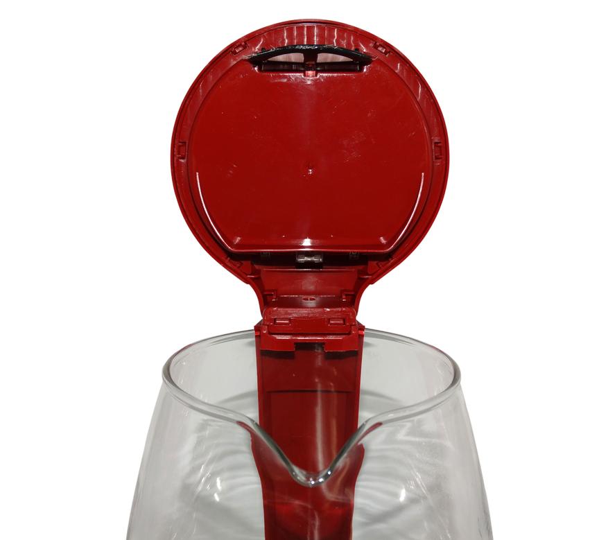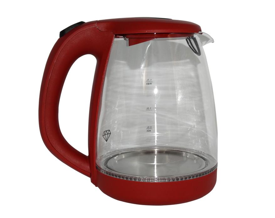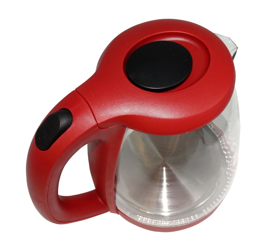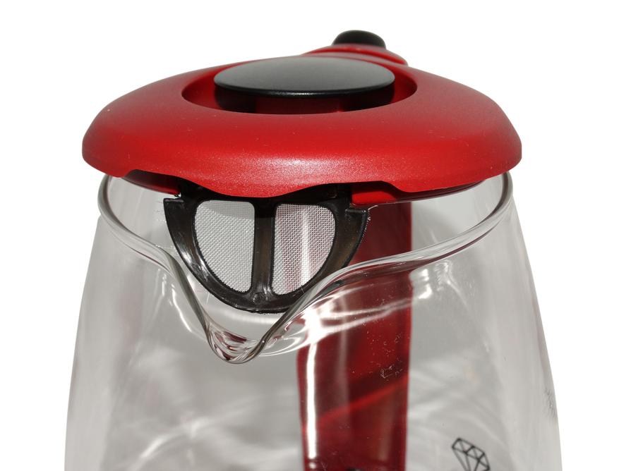 Чайник обладает стандартной для подобных приборов формой. В центре находится боросиликатная стеклянная колба, которая также служит в роли корпуса. Верхняя и нижняя части чайника, а также ручка на задней стороне прибора, сделаны из пластика. В целом качество сборки хорошее, учитывая низкую стоимость прибора, и если не обращать внимания на некоторые шероховатости вроде торчащих маленьких кусочков пластика.