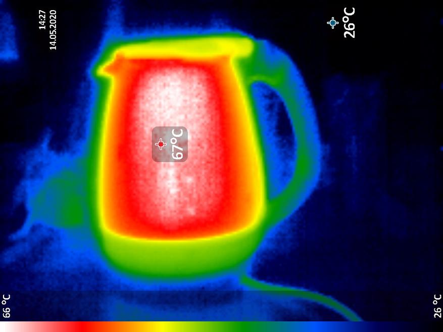 | Температура воды в чайнике через 1 час после закипания (при комнатной температуре 23°C) | 67°C |