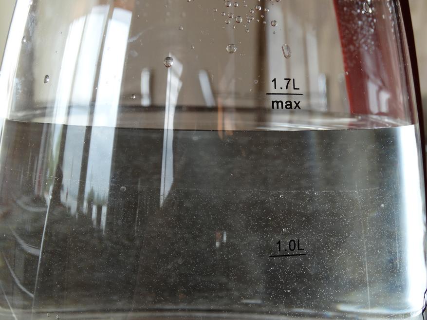 Судя по отметкам на чайнике, рекомендуется заливать в прибор 1.7 литра воды, но по факту эти отметки не совсем точные, что даёт возможность залить внутрь ещё около 100 мл жидкости, которые точно не будут выплёскиваться за пределы чайника при закипании.