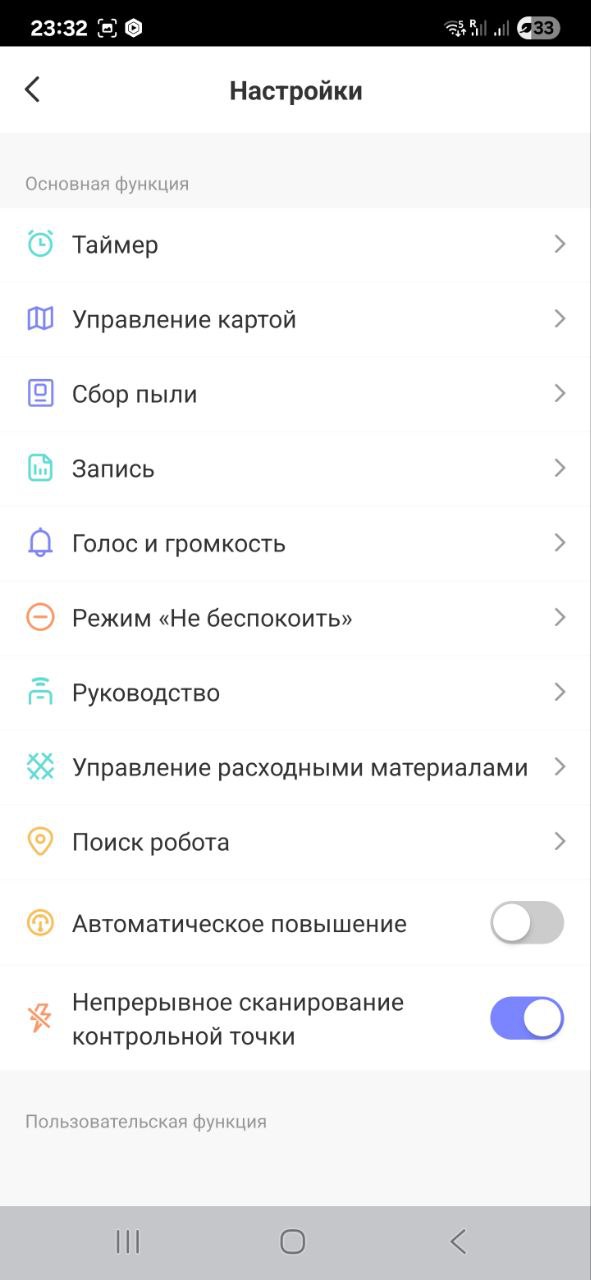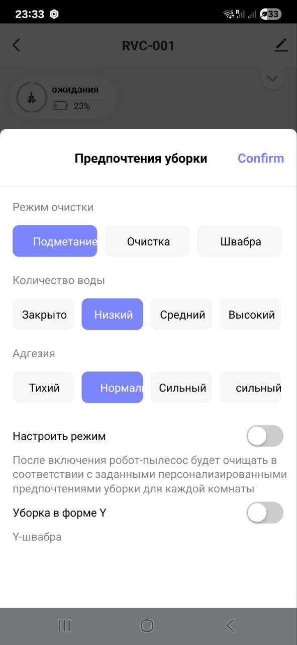 Все основные функции доступны через мобильное приложение Tuya или Smart Life: настройка расписания, выбор мощности, режимы уборки, просмотр карты, обновление прошивки. Интерфейс привычный, логика настроек вменяемая, подключение занимает пару минут, всё стабильно.