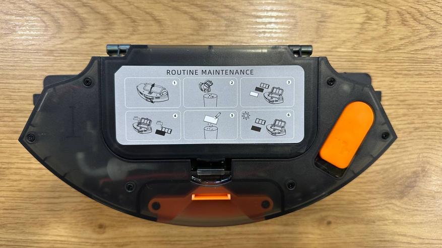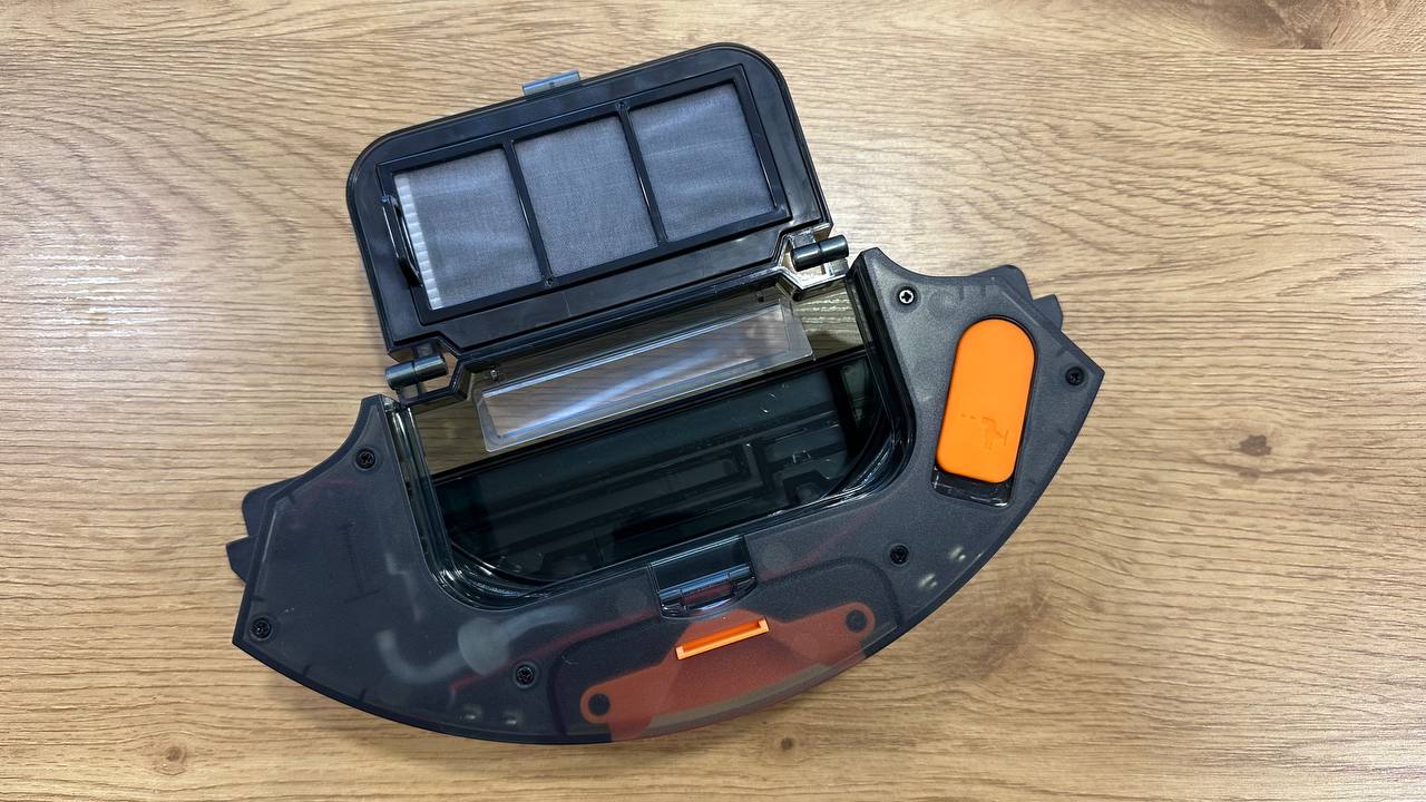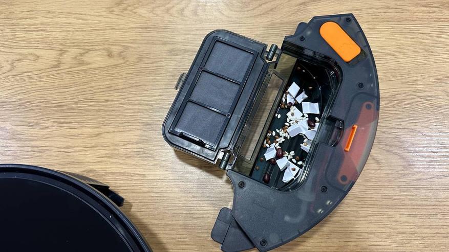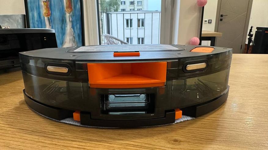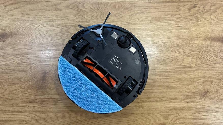 Влажная уборка реализована не как «дополнение для галочки», а как полноценный режим. Подача воды дозированная, регулируется через приложение. Если салфетка не установлена, датчик это определяет, и робот в этот момент переходит в сухую уборку. Вода не льется самопроизвольно, ничего не капает при переноске. Для недорогой модели это важный момент.