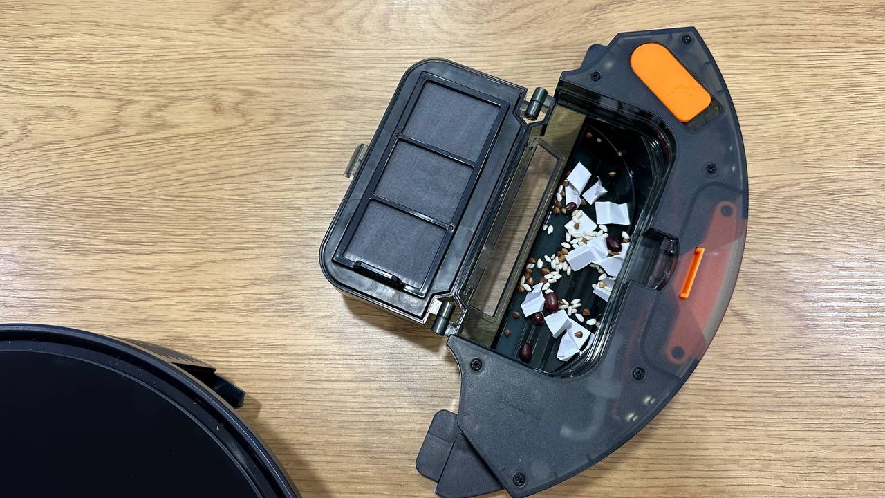 Для оценки качества уборки была выбрана локальная зона. На полу рассыпали крупу (гречка, рис), фасоль средних размеров, а также мелко нарезанную бумагу, размером 1x1 см. Напольное покрытие — текстурированный ламинат. Уборка производилась в режиме максимальной мощности. Все частицы, включая сложные для захвата фрагменты бумаги, были собраны с первого прохода. Лишь пара бумажных кусочков отлетела потоком воздуха.
