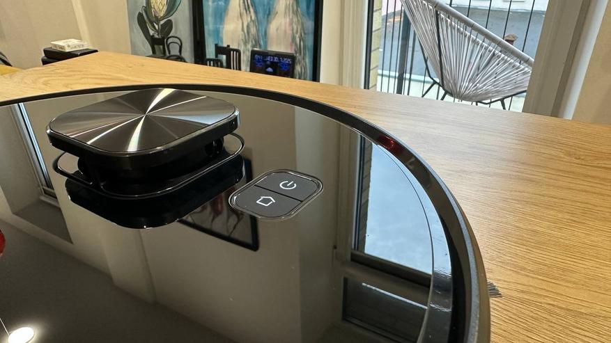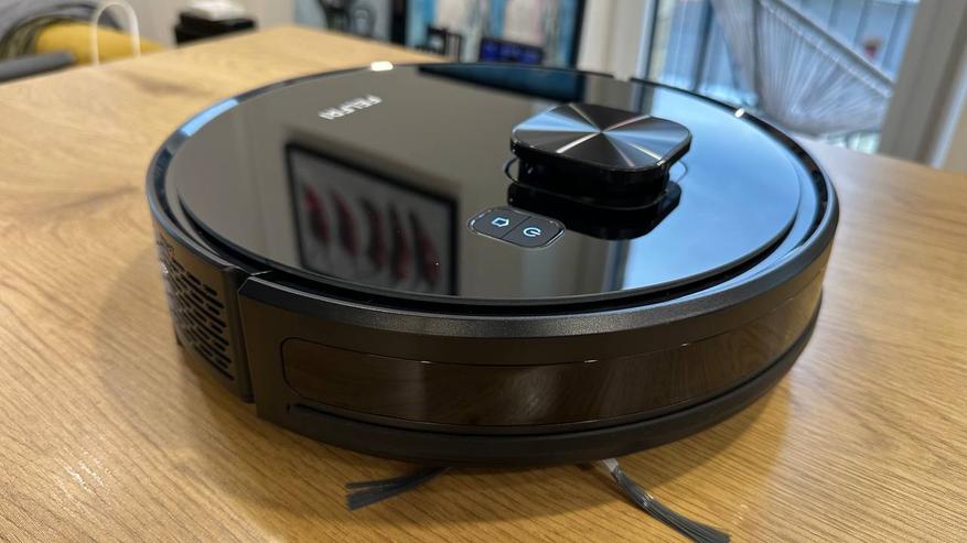 Этот пылесос как раз для тех, кто не готов тратить время на подключение, регистрацию и прочие «танцы с настройками». Из коробки он был заряжен, так что после распаковки его можно сразу запустить. На корпусе есть две физические кнопки: одна запускает уборку, вторая отправляет устройство на базу. Этого вполне достаточно, если задача — просто включить и не думать.