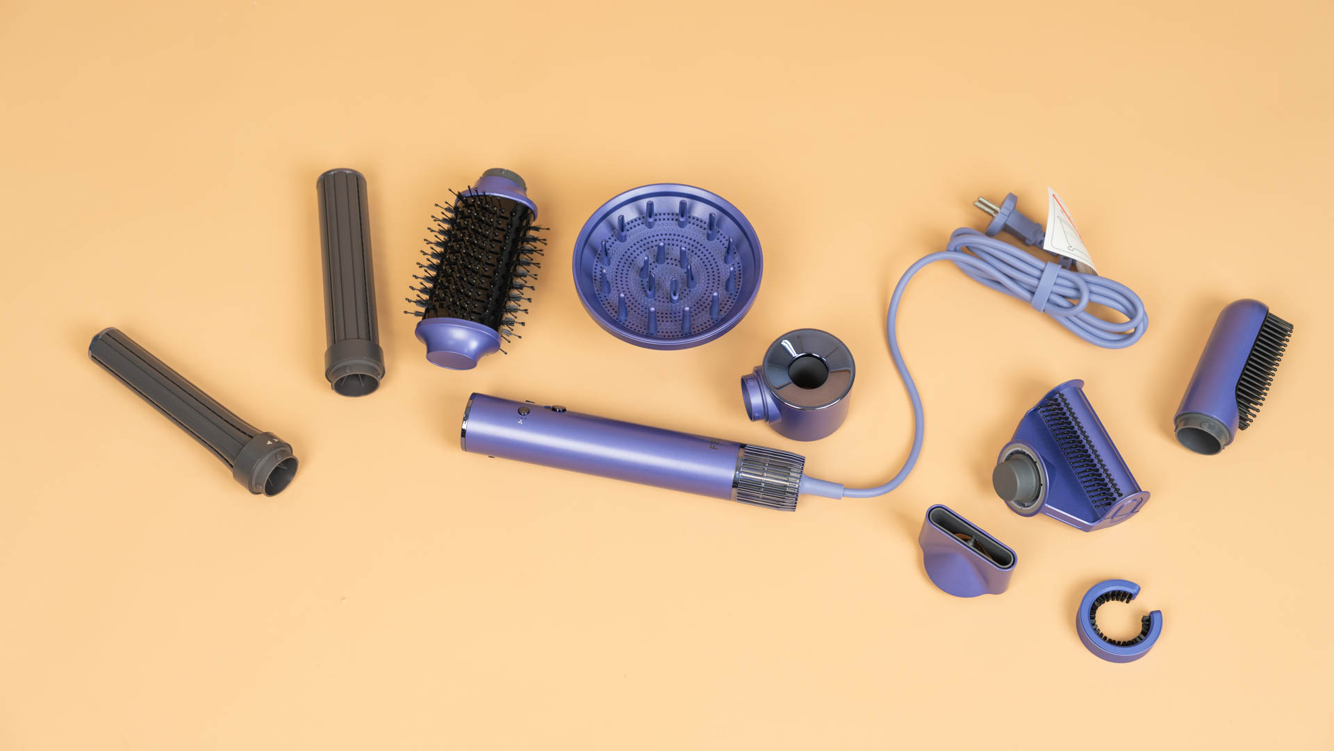 Набор насадок для Felfri HD07 включает как базовые инструменты для укладки, такие как расческа, брашинг, так и специализированные насадки: диффузор для объема, концентратор для точной укладки, насадку для непослушных волос и две цилиндрические насадки 30 и 40 мм для создания локонов. Дополнительно предусмотрено кольцо для использования аромамасел в процессе укладки.
