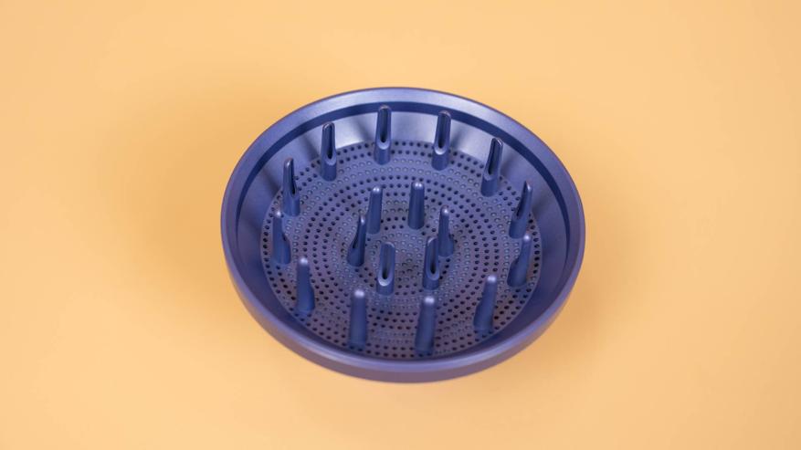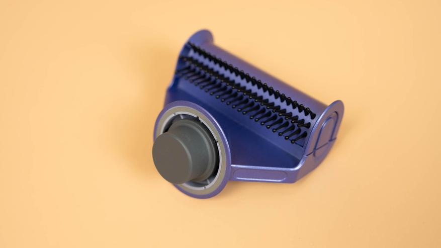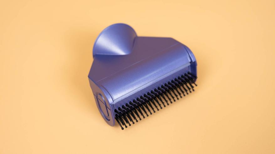 Конструкция насадки включает магнитное крепление, совместимое с дополнительными элементами. На нее может быть установлен вращающийся на 360 градусов концентратор, который позволяет аккуратно прорабатывать отдельные пряди и создавать четкие линии в укладке.