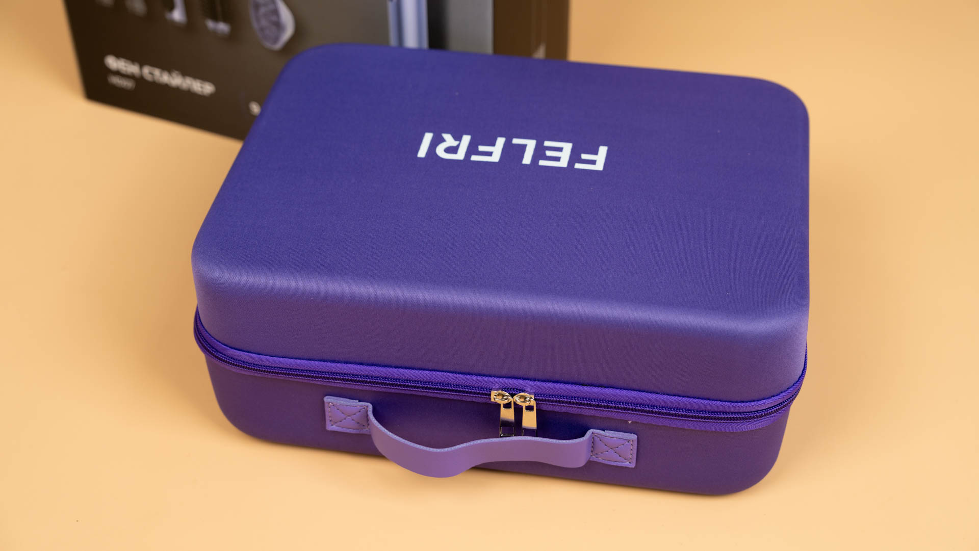 Для хранения и транспортировки фен-стайлера и насадок предусмотрен удобный чемоданчик на молнии. Внутри чемоданчика для каждого предмета есть своё место, что помогает поддерживать порядок и обеспечивает сохранность.