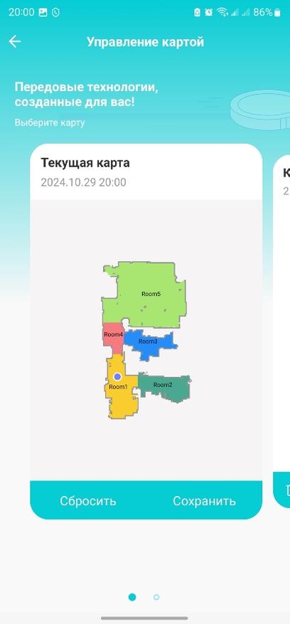 Заряжаю робота, проверяю обновления встроенной прошивки, добавляю чистую воду в средний контейнер. На самом роботе установил салфетки. Как я уже сказал выше, при первом запуске робот построил карту помещения — я установил максимальную мощность всасывания в комнатах, где есть ковры, а также отметил запретными для передвижения входной коврик и лоток для домашнего питомца. После этого запустил автоматическую уборку в совмещенном режиме (сухая + влажная одновременно).
