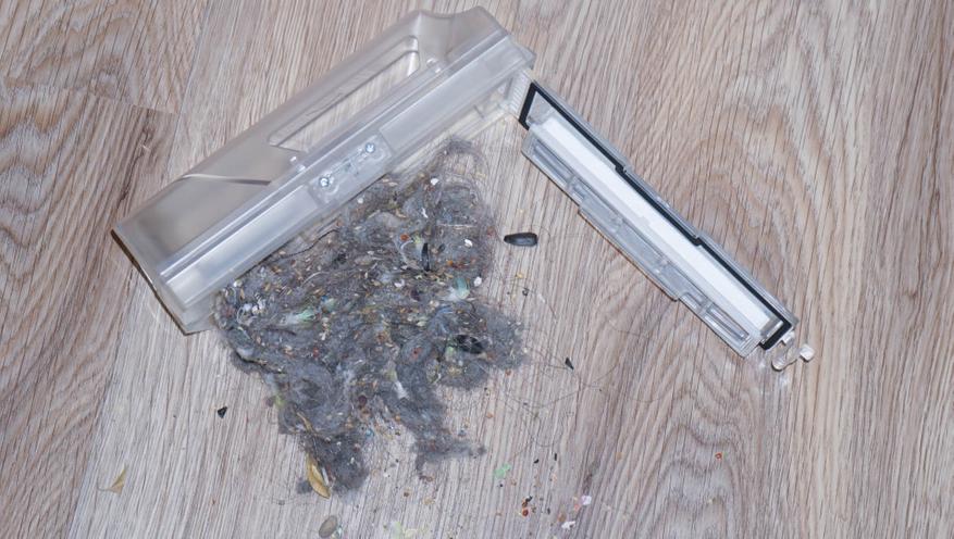 Как я уже сказал выше, робот имеет сразу два дисковых привода с салфетками для влажной уборки. Диски вращаются с небольшим прижимом таким образом, что пол протирается не хуже, чем при уборке обычной ручной шваброй. Грязь с салфеток смывается на станции самоочистки — можно настроить промывку перед уборкой каждой комнаты на карте. Диски снимаются, салфетки крепятся на липучке — их можно снять и постирать при сильных загрязнениях или поменять на сменный комплект. Да и центральная турбощетка у пылесоса подвижная, что удобно при уборке покрытий с перепадом высоты.