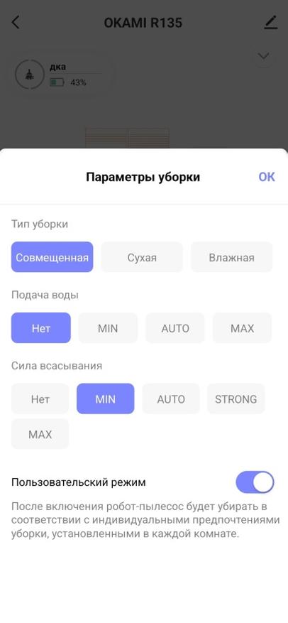Управлять роботом удаленно поможет приложение OKAMI IQ Home, которое можно установить на планшеты или смартфоны под управлением операционных систем Андроид или iOS. Добавить робота в приложение не сложно, в инструкции подробно описывается процедура подключения к точке доступа и настройке робота. При первой уборке робот составит карту вашего помещения, а в дальнейшем эту карту можно будет сохранить или отредактировать. Например, можно разделить на разные зоны (комнаты), в которых можно настроить отдельные режимы для уборки. Также можно установить виртуальный барьер для робота, то есть обозначить место, в которое не следует заезжать при уборке. Предусмотрены детальные настройки для режимов сухой и влажной уборки, также отмечу русский язык как в самом приложении, так и в озвучке.