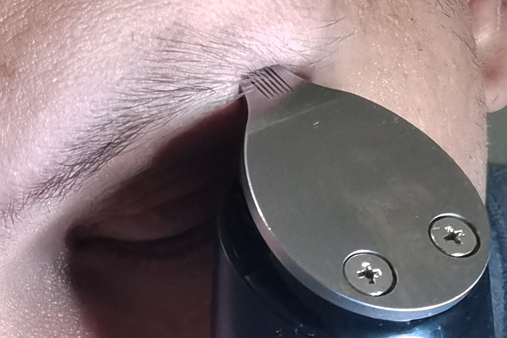 В результате получается относительно гладкая кожа, хотя порядка 0.1 мм все равно остается, зато, в отличие от станка, никакого раздражения не возникает. Осталось только установить насадку для труднодоступных мест, чтобы срезать волоски внутри ушей и носа. Тут главное не засовывать ее глубже 5 мм.
