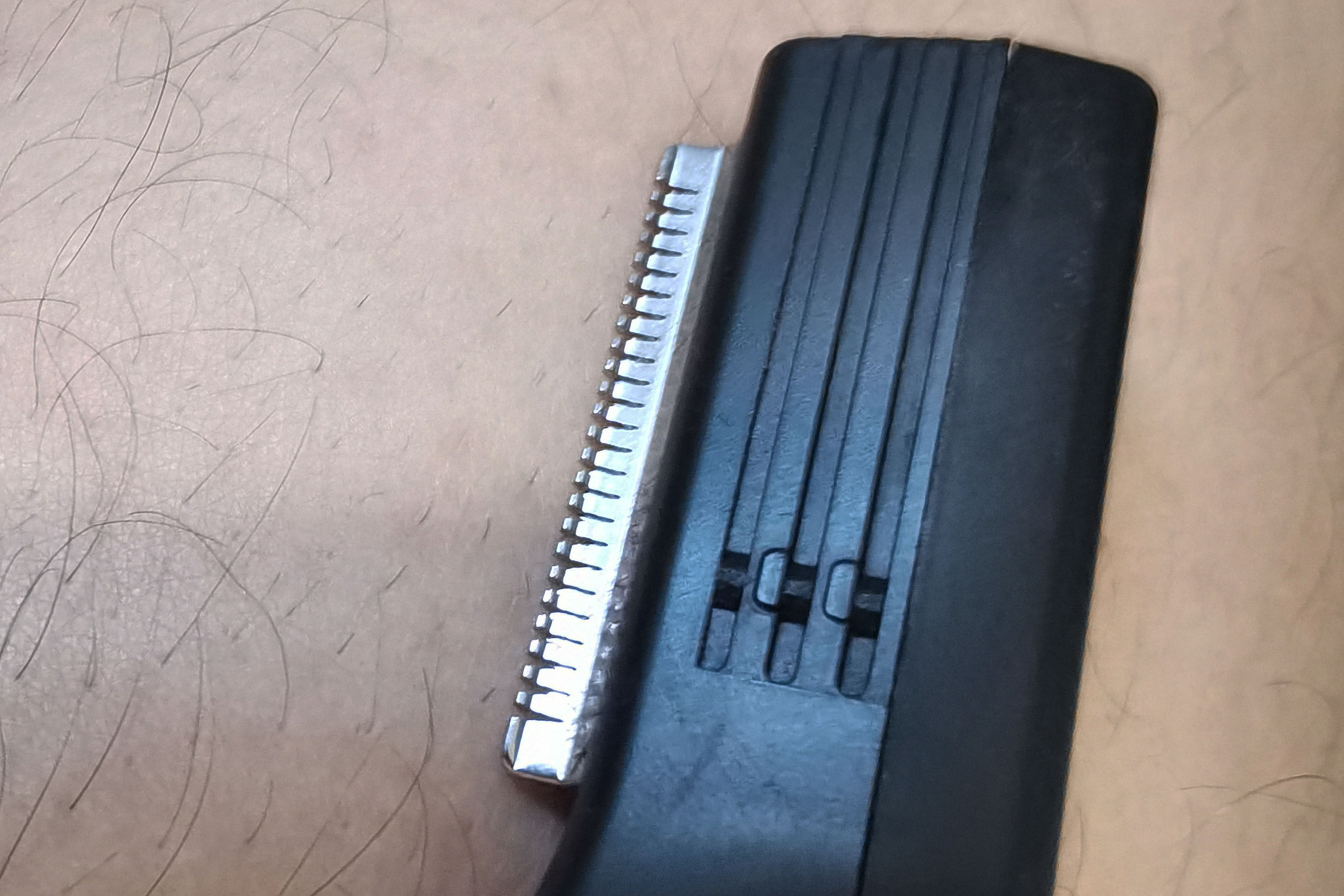 Насадку для тела обычно использую для очистки подмышек и области пониже пресса. Работаю ей как расческой, двигаясь в обе стороны — после 2-3 взмахов волос нет, порезов тоже, раздражение минимальное. Пользоваться очень удобно. В паре с гребнем использую эту насадку, когда на груди отрастают слишком длинные волосы. Здесь эффективность несколько падает из-за завитушек.