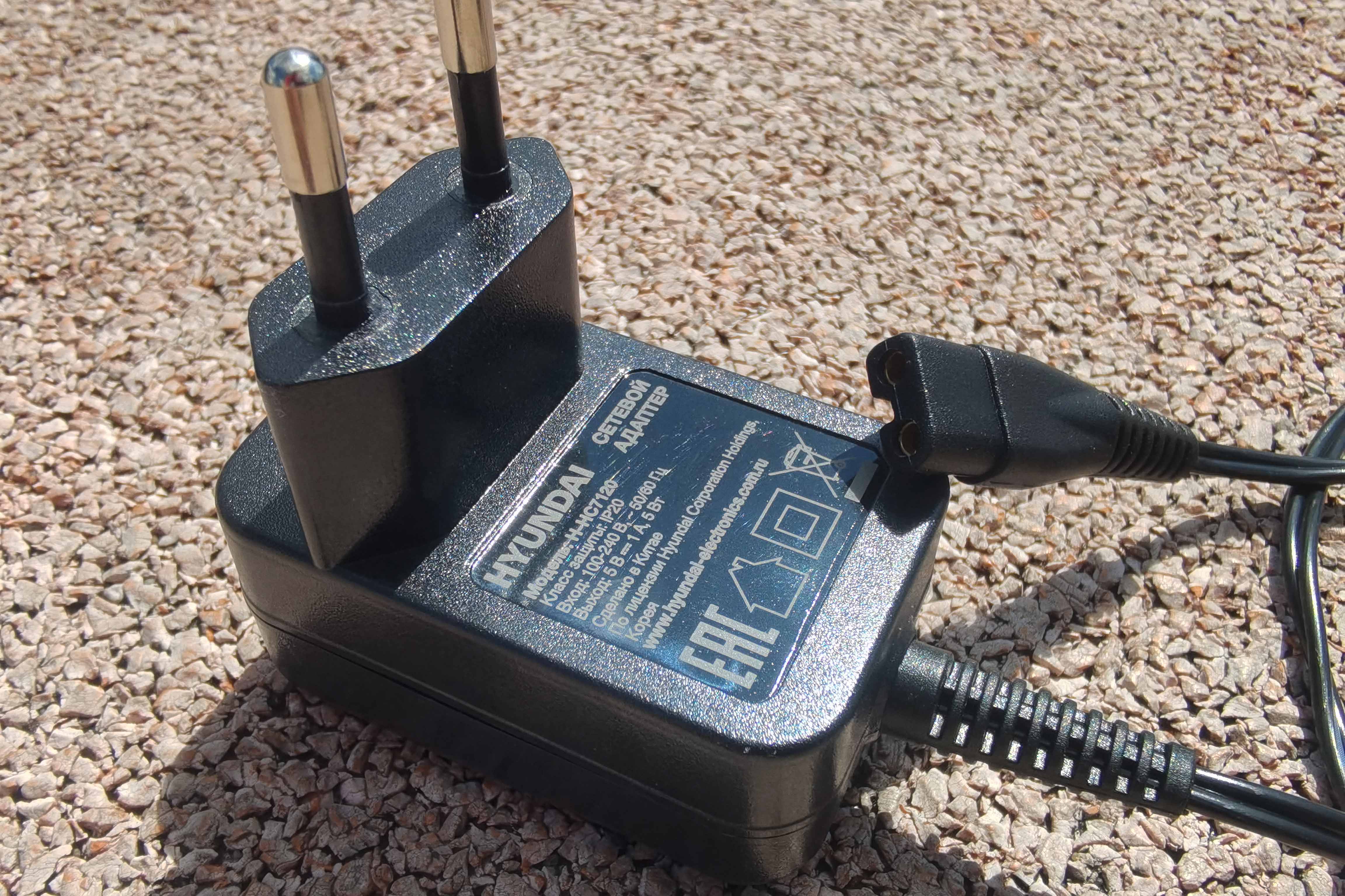 Адаптер питания (5В, 1 А) оснащен кабелем длиной 190 см с B-образным коннектором. Его можно подключить к моторному блоку напрямую, либо вставить в гнездо подставки, чтобы прибор мог заряжаться, будучи установленным в предназначенный для него слот. Процесс полного восстановления энергии занимает 76 минут (при заявленных 90). При этом не стоит оставлять триммер подключенным слишком долго, иначе батарея начнет деградировать.