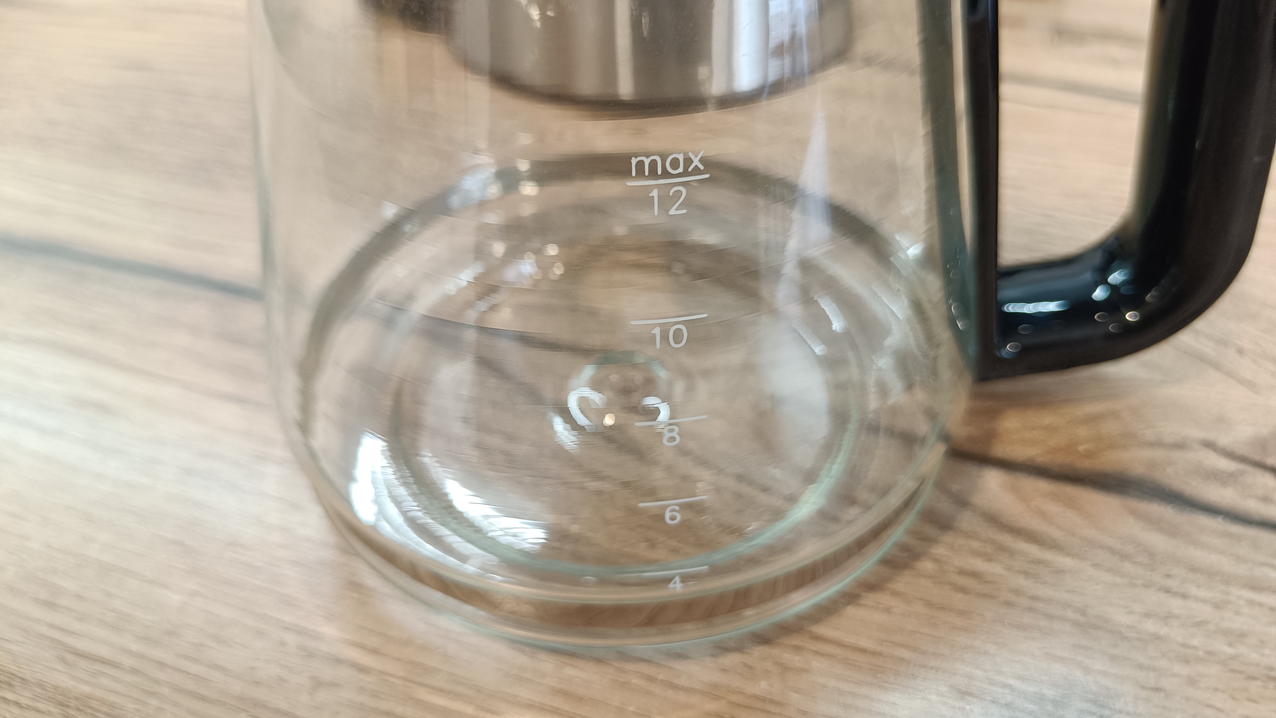 Приготовленный кофе собирается в стеклянный кувшин с защитной крышкой. Для защиты от ожогов предусмотрено ручка, за которую следует извлекать кувшин из кофеварки. Под кувшином установлена нагревательная пластина. Это позволит поддерживать температуру кофе после приготовления. На кувшине, как и на контейнере, присутствует разметка.