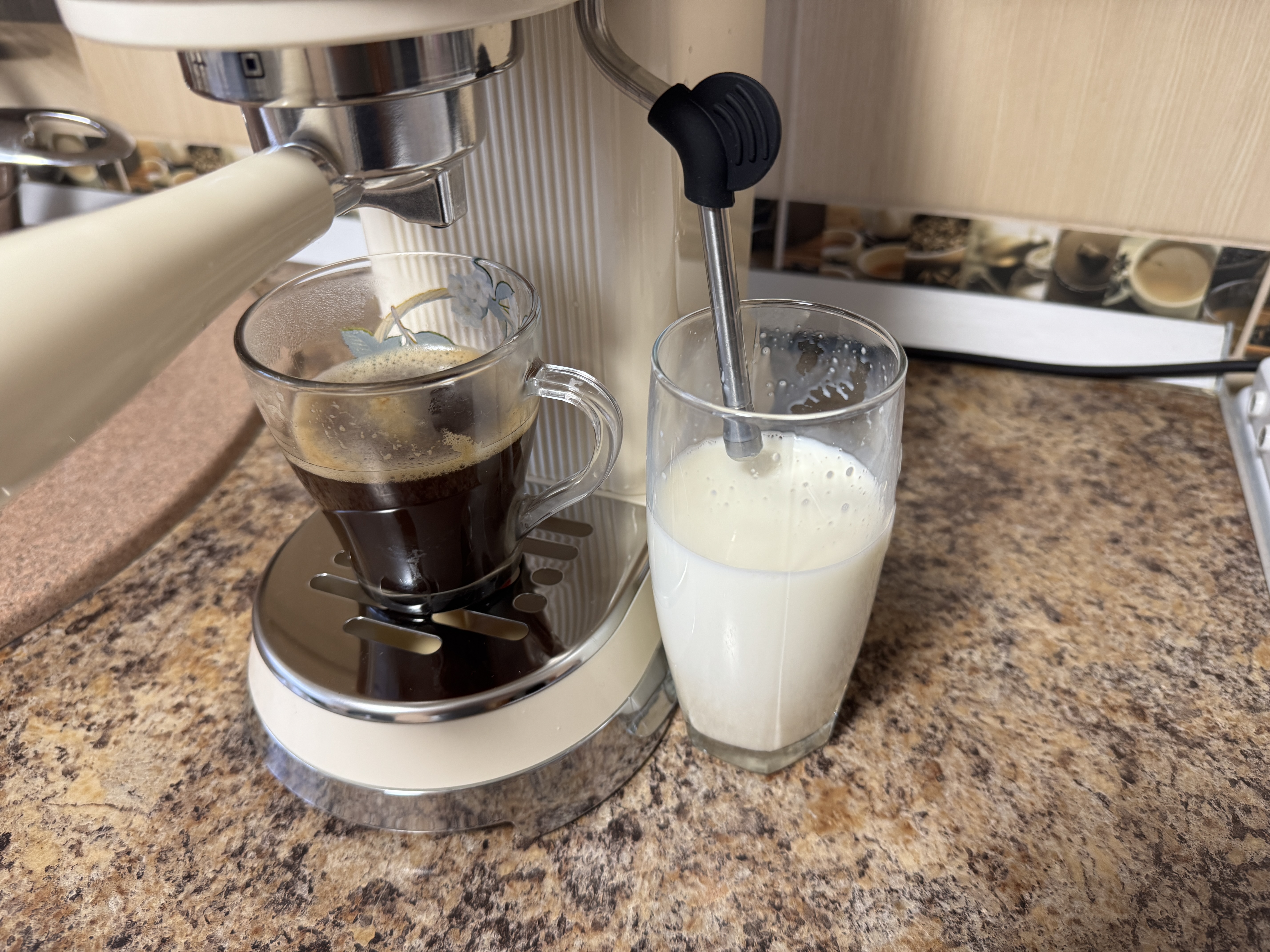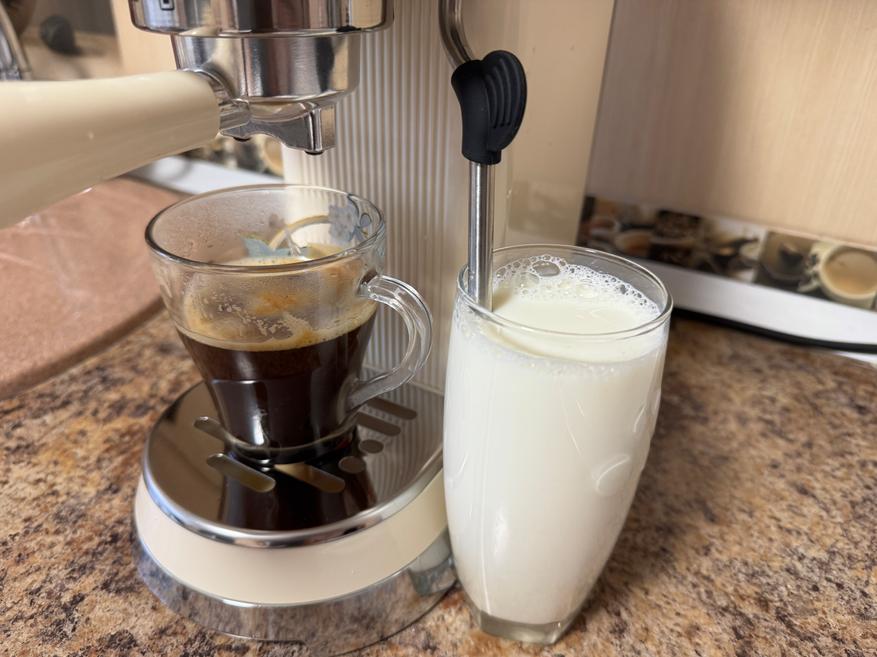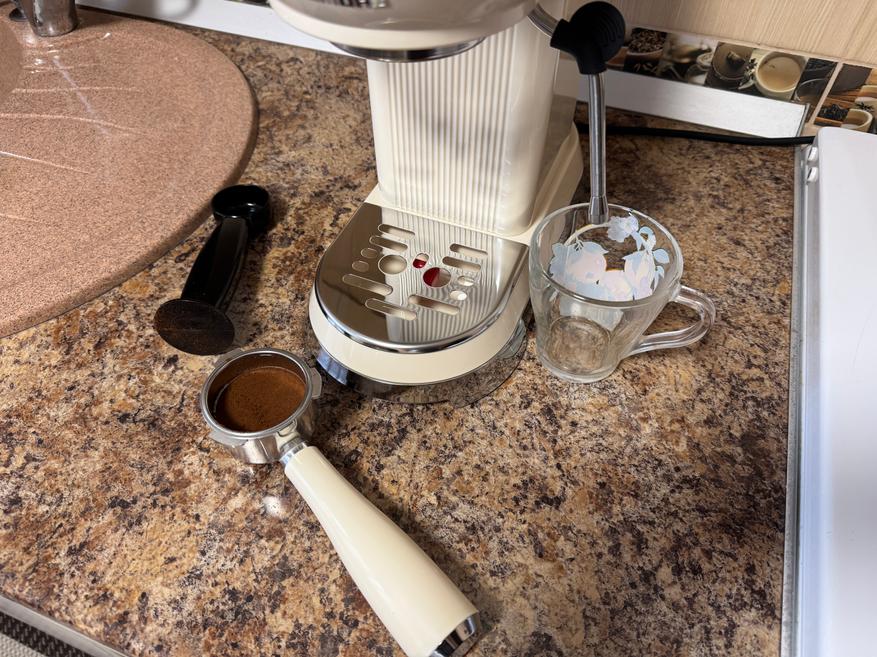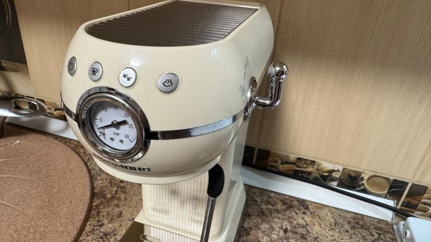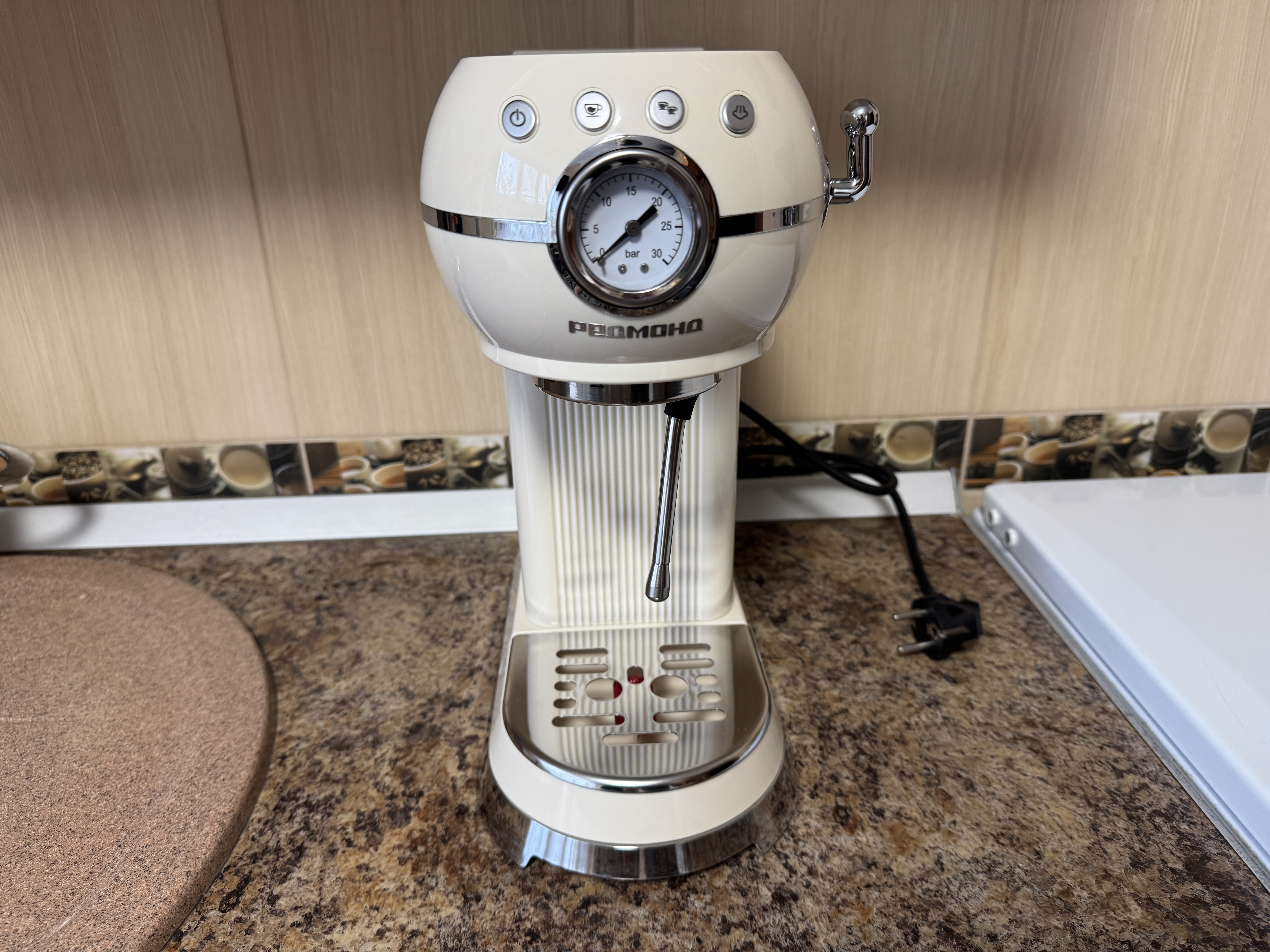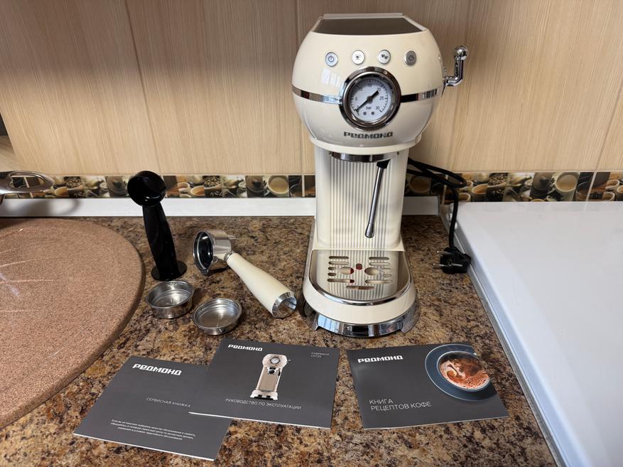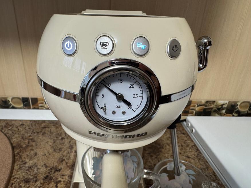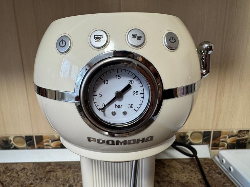 Подводя итоги, хочу отметить, что кофеварка РЕДМОНД CM722, представленная в винтажном стиле, отлично впишется даже в современный интерьер. Данная модель снабжена профессиональной итальянской помпой Ulka, которая создает давление в 15 бар, благодаря чему мы можем наслаждаться полноценным вкусом кофейных зерен. А благодаря функции предсмачивания напиток получается особенно насыщенным. Также отмечу, что кофеварка РЕДМОНД CM722 может побаловать не только поклонников крепкого эспрессо, но и любителей нежного капучино. Еще хочется отметить, что представленная модель кофеварки приготовит эспрессо своему обладателю всего лишь за 25 секунд, круто! Что касаемо капучинатора, то он работает отлично, главное правильно подобрать под себя жирность и количество молока.