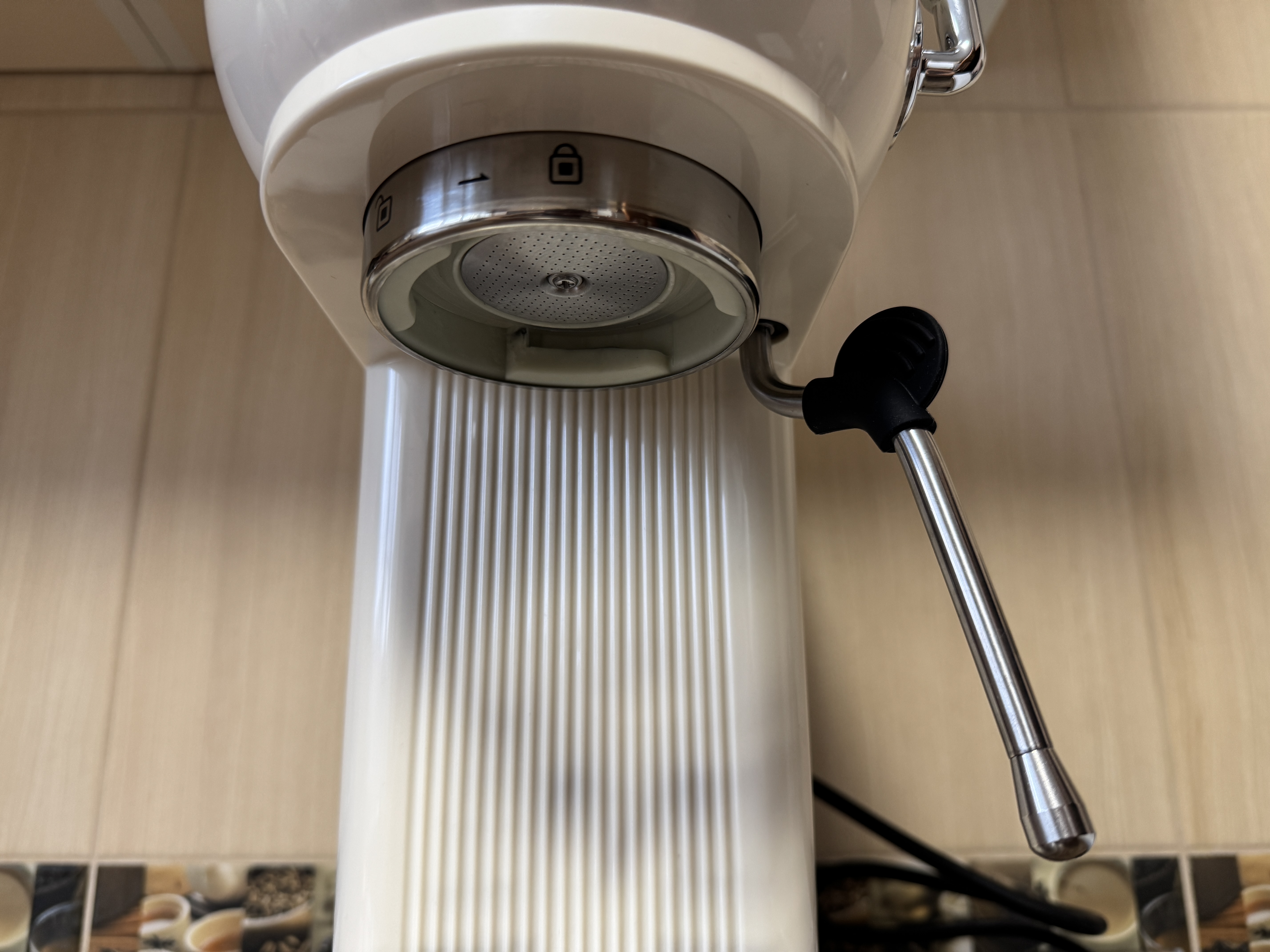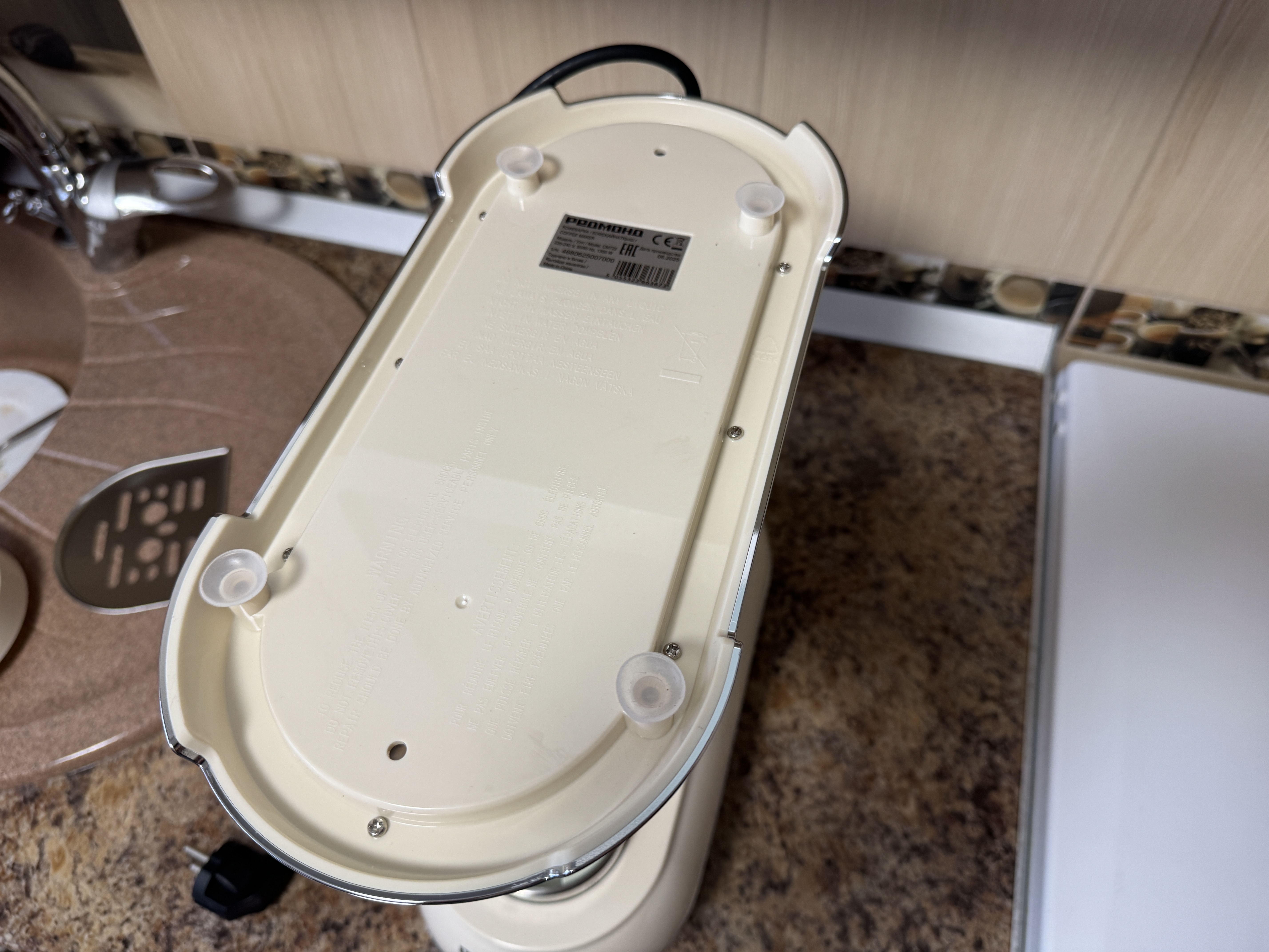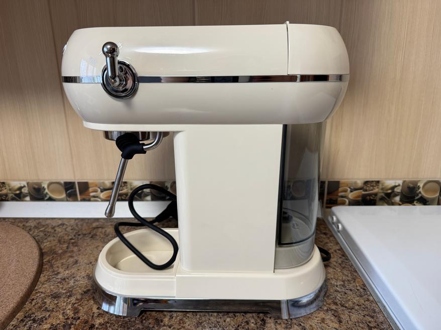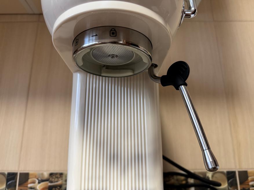 Компания РЕДМОНД выпустила новую линейку бытовых приборов в винтажном стиле, которые смогут подчеркнуть утонченность вашего интерьера кухни. Корпус кофеварки выполнен из пищевого пластика приятного бежевого цвета. Также корпус имеет металлические хромированные вставки, которые дополняют общий вид кофеварки. С левой стороны расположился ручной регулятор пара, благодаря которому можно выбрать интенсивность пара в момент взбивания молока в молочную пену. Для удобства на корпусе присутствует визуальная картинка, по которой удобно ориентироваться о следующих действиях. Устанавливается фильтродержатель в специально отведенное отверстие с пластиковыми замками. С боковой стороны расположилось металлическое устройство с соплом для подачи пара. На верхней части имеется резиновая петелька, за которую удобно перемещать горячую трубку после использования. Почти вся верхняя часть имеет рифленую металлическую панель, на которой можно разместить 2 чашки для предварительного нагрева. Устанавливается кофеварка на 4 резиновые ножки-присоски, которые отлично удерживают корпус на любой поверхности и не дают скользить.