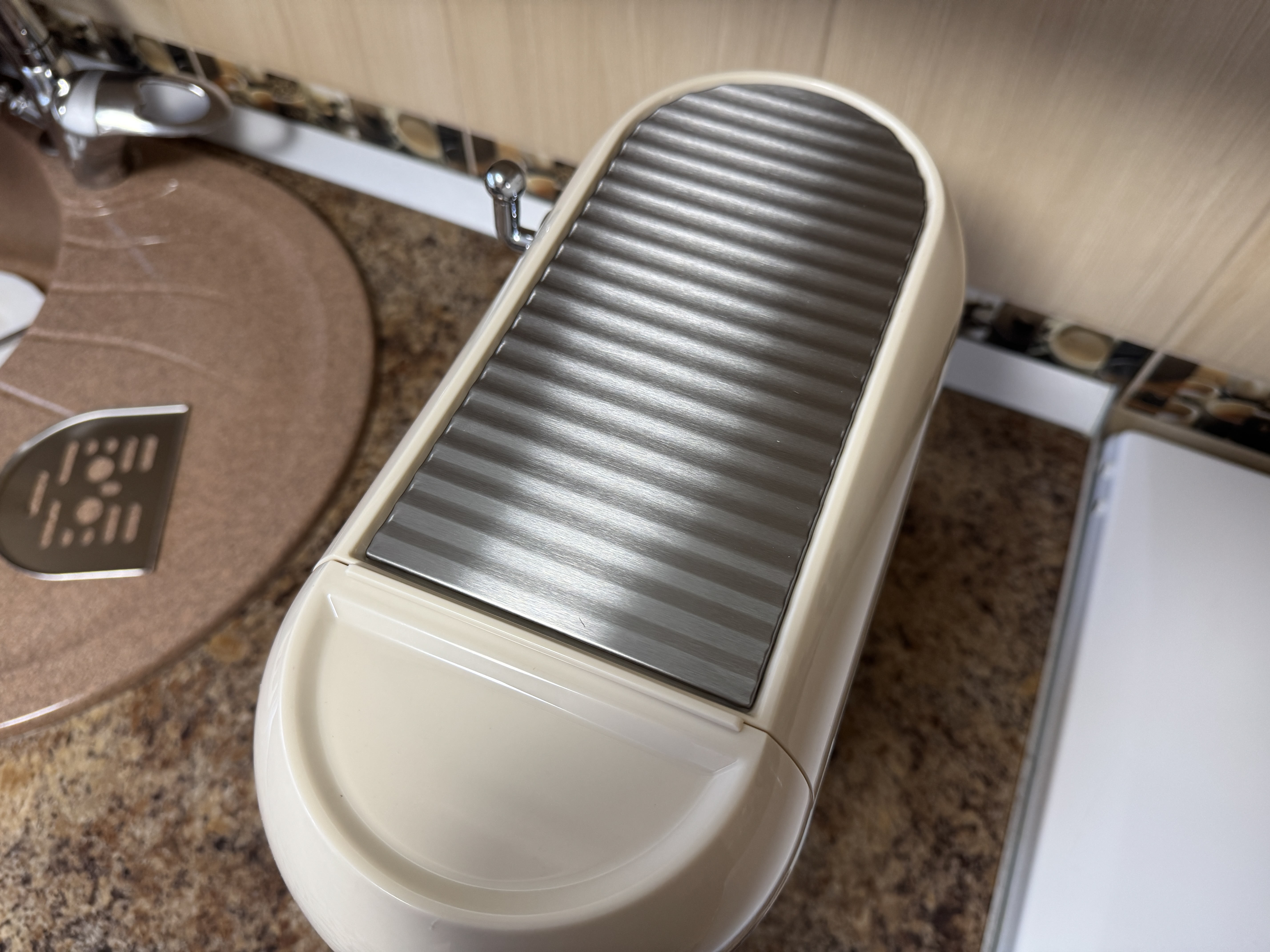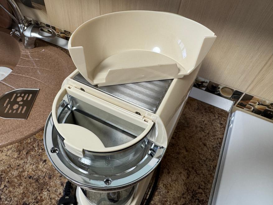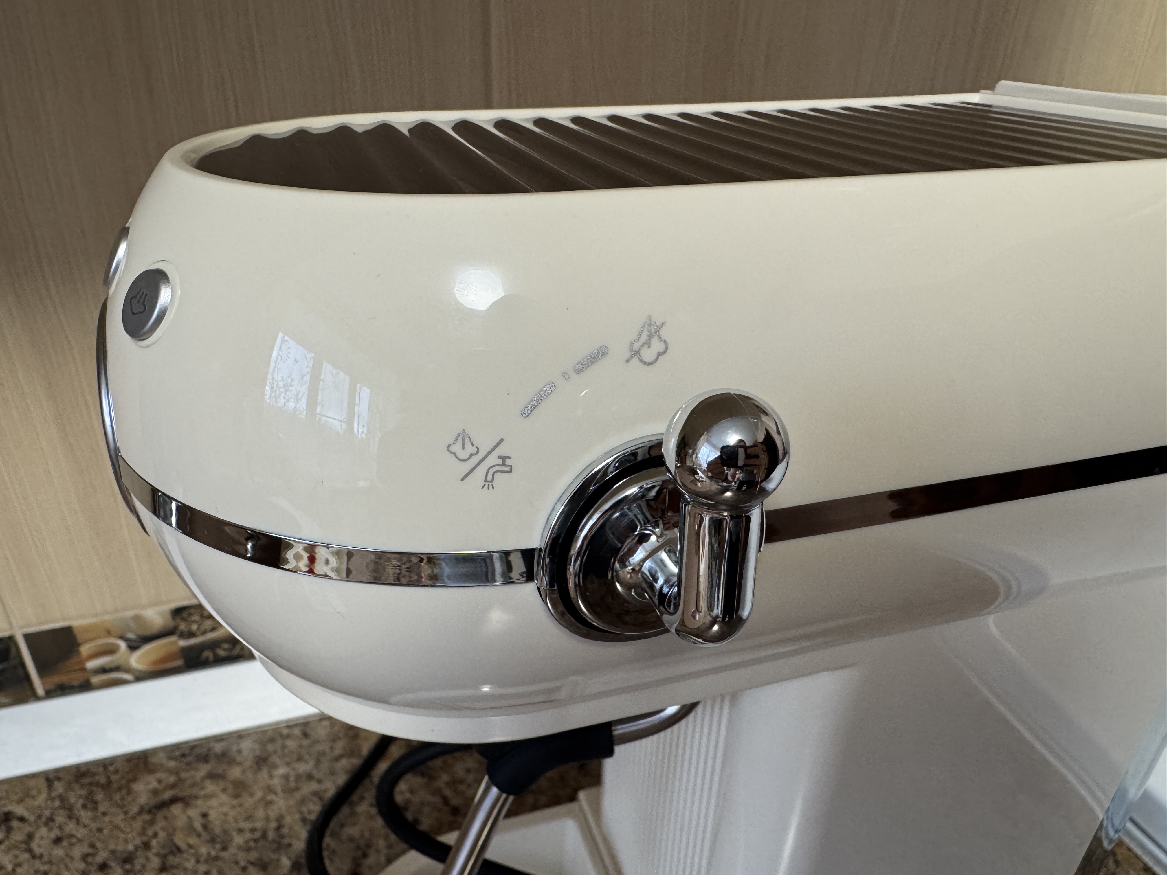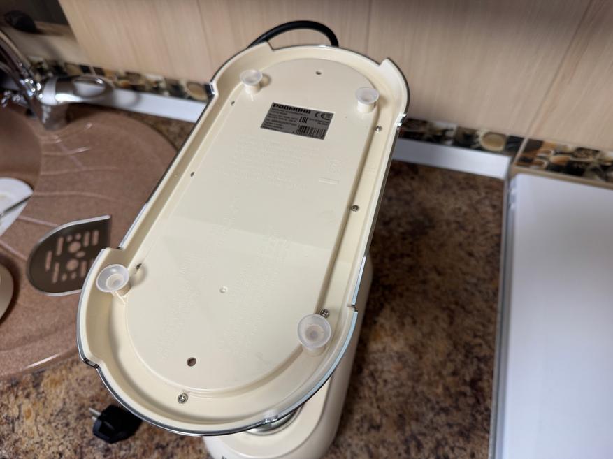 Компания РЕДМОНД выпустила новую линейку бытовых приборов в винтажном стиле, которые смогут подчеркнуть утонченность вашего интерьера кухни. Корпус кофеварки выполнен из пищевого пластика приятного бежевого цвета. Также корпус имеет металлические хромированные вставки, которые дополняют общий вид кофеварки. С левой стороны расположился ручной регулятор пара, благодаря которому можно выбрать интенсивность пара в момент взбивания молока в молочную пену. Для удобства на корпусе присутствует визуальная картинка, по которой удобно ориентироваться о следующих действиях. Устанавливается фильтродержатель в специально отведенное отверстие с пластиковыми замками. С боковой стороны расположилось металлическое устройство с соплом для подачи пара. На верхней части имеется резиновая петелька, за которую удобно перемещать горячую трубку после использования. Почти вся верхняя часть имеет рифленую металлическую панель, на которой можно разместить 2 чашки для предварительного нагрева. Устанавливается кофеварка на 4 резиновые ножки-присоски, которые отлично удерживают корпус на любой поверхности и не дают скользить.