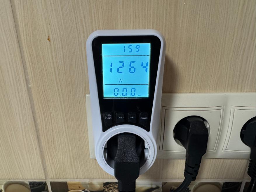 Во время приготовления кофе потребление составляет 1264 Вт.