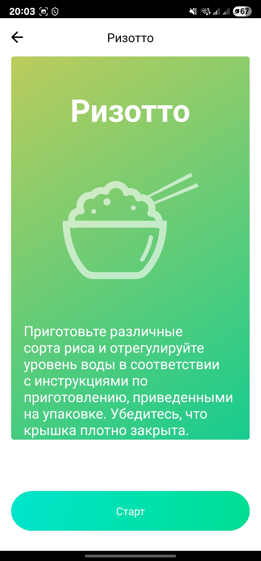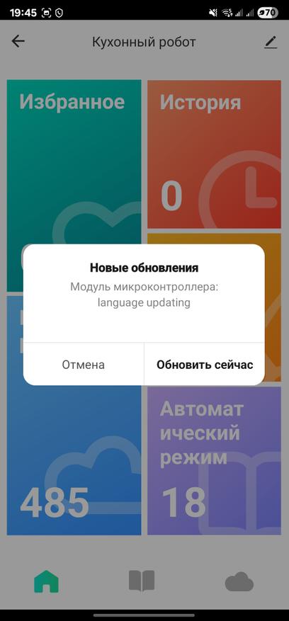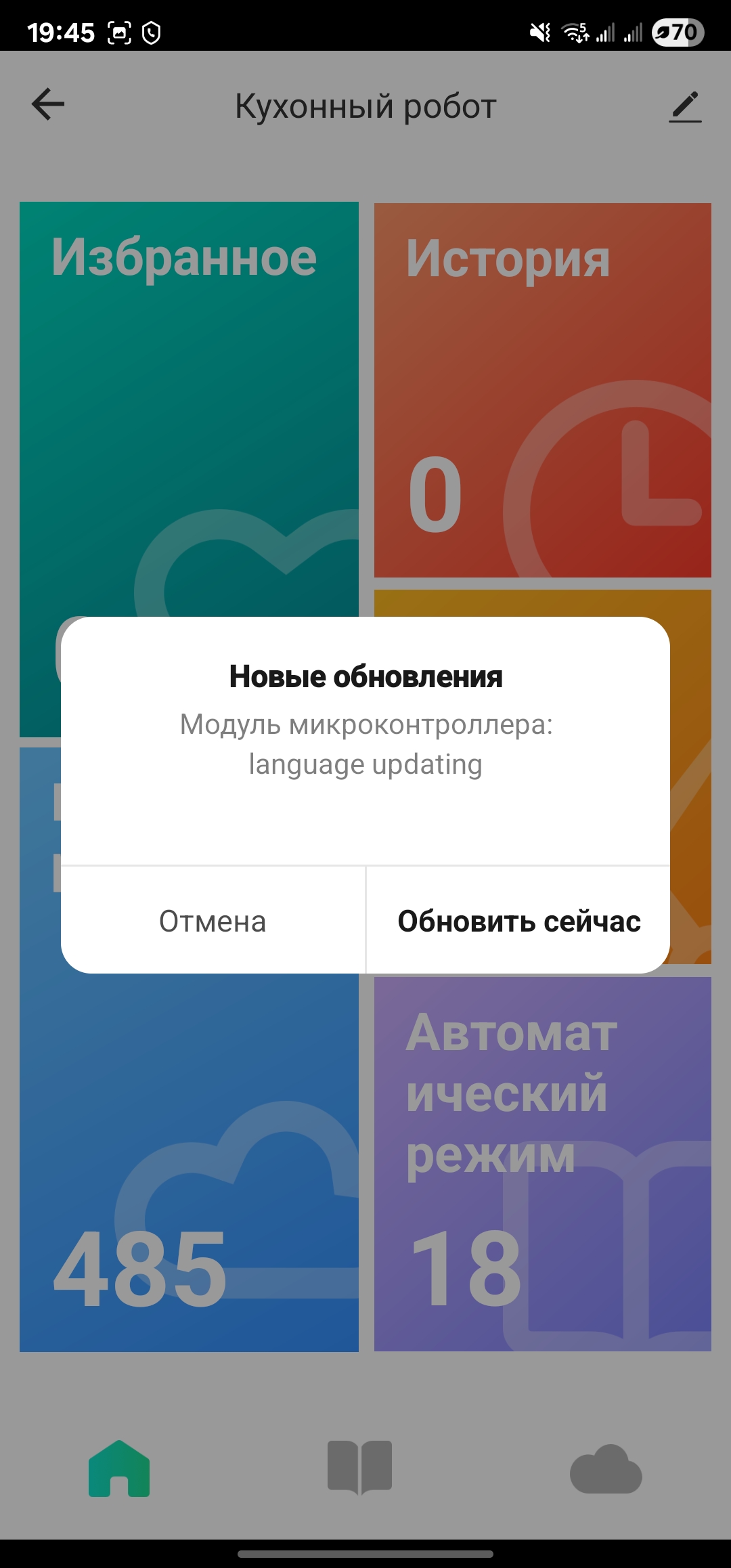 С домашней страницы приложения Tuya заходим в раздел самого робота, открывается меню с авторежимами (можно выбрать любую — она автоматически запустится на экране робота). Также доступен раздел с рецептурами. Продвинутым пользователям будет интересен режим ручного приготовления для самостоятельного выбора. Кстати, через Tuya App робот сможет обновить встроенное ПО — настоятельно рекомендую сделать это перед работой.