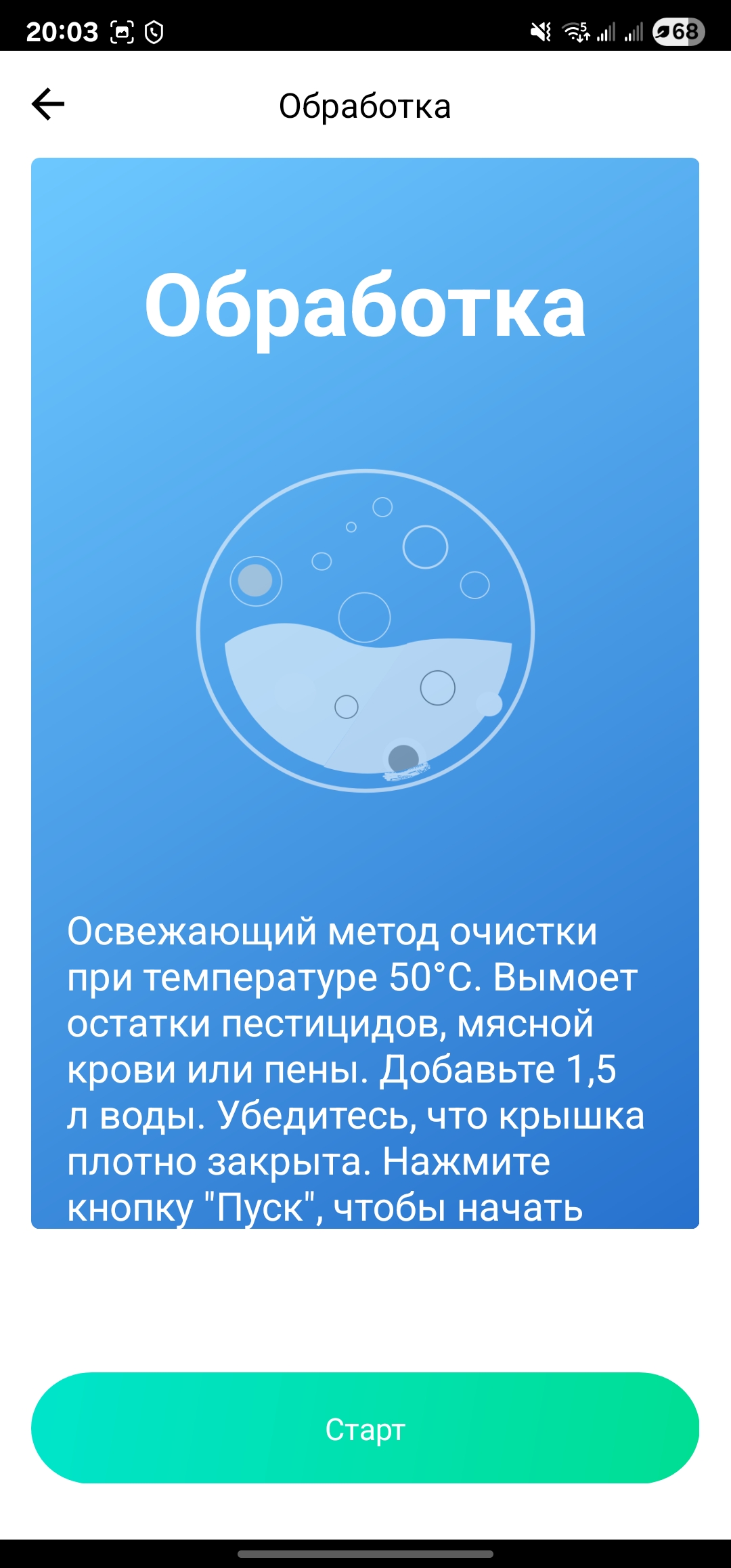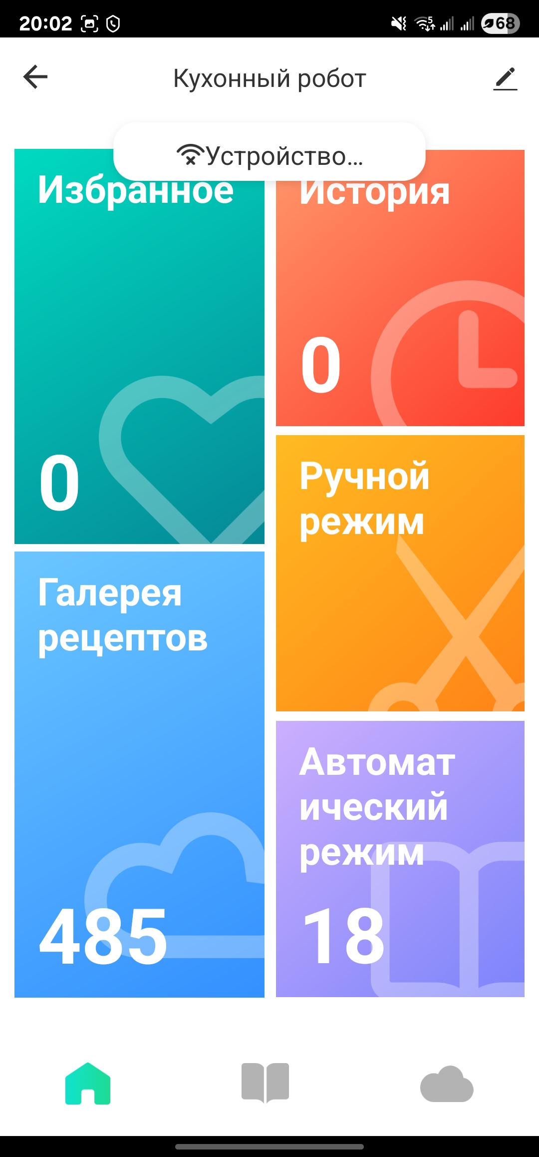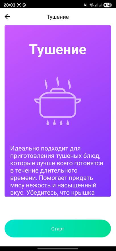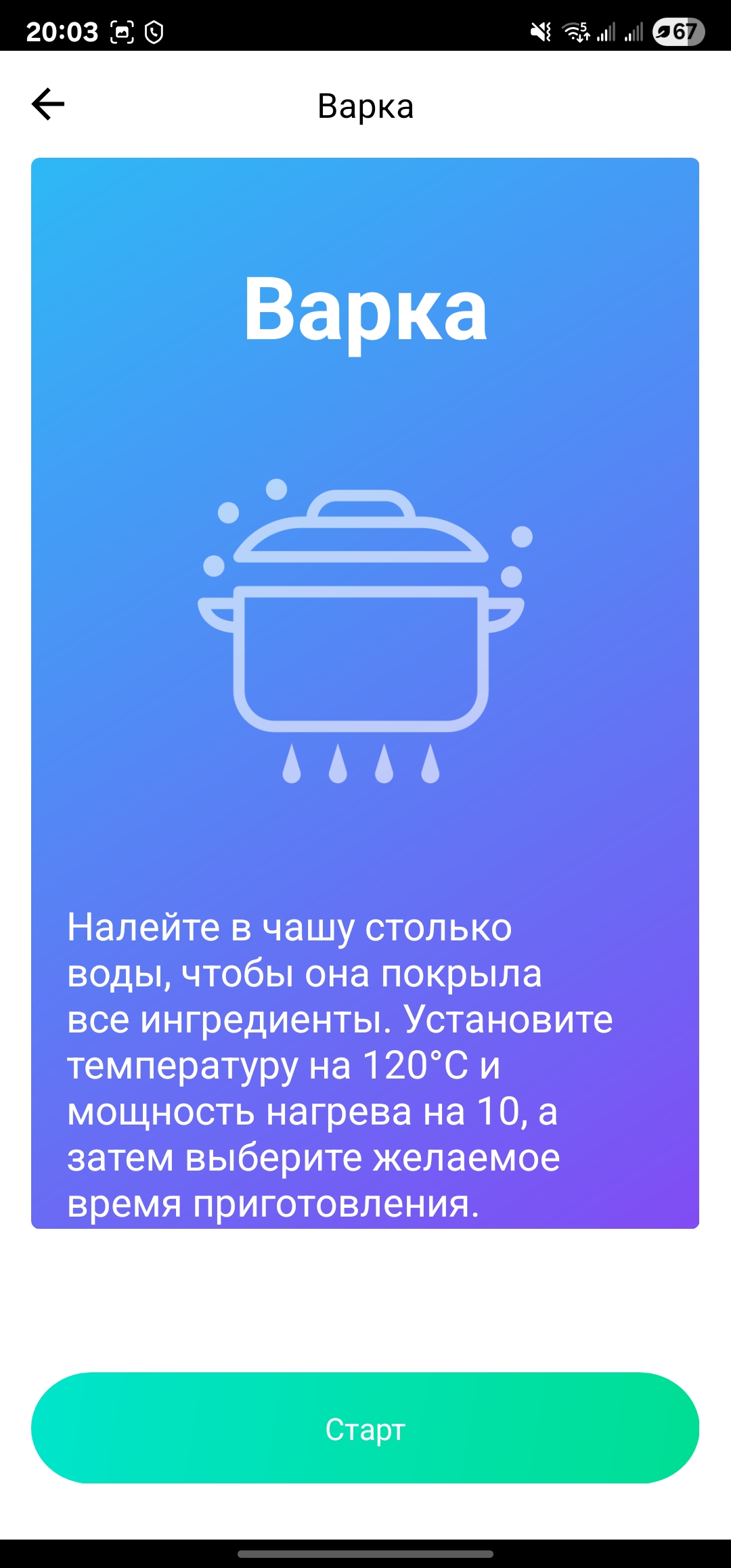С домашней страницы приложения Tuya заходим в раздел самого робота, открывается меню с авторежимами (можно выбрать любую — она автоматически запустится на экране робота). Также доступен раздел с рецептурами. Продвинутым пользователям будет интересен режим ручного приготовления для самостоятельного выбора. Кстати, через Tuya App робот сможет обновить встроенное ПО — настоятельно рекомендую сделать это перед работой.
