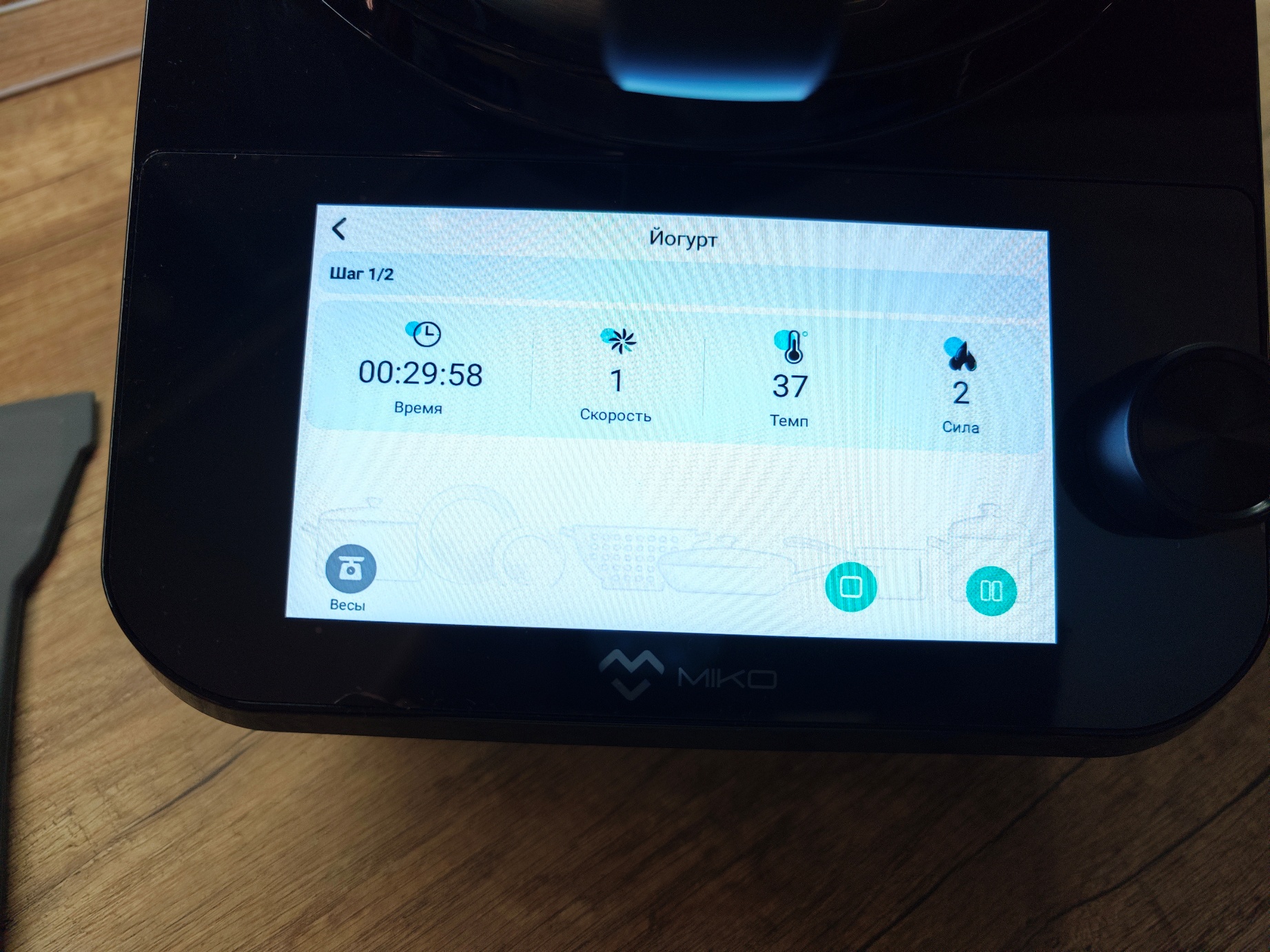Подобный робот действительно поможет экономить время хозяйки. Тут и автоматизация процессов: прибор самостоятельно контролирует температуру, время и интенсивность перемешивания. Достаточно загрузить ингредиенты и выбрать программу — всё остальное MIKO SMARTBOT C5 сделает сам. Отмечу, что есть встроенные весы — можно не искать отдельные кухонные весы для взвешивания ингредиентов. Такой подход к технике прилично экономить место на кухне — весь все эти функции помещаются в корпусе размером, примерно, 50 х 38 х 50 сантиметров.