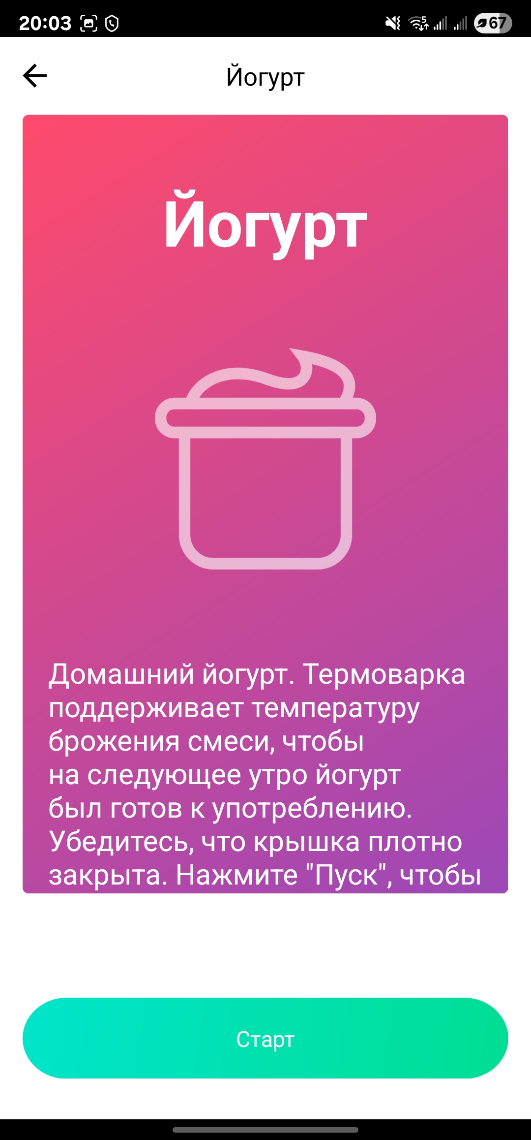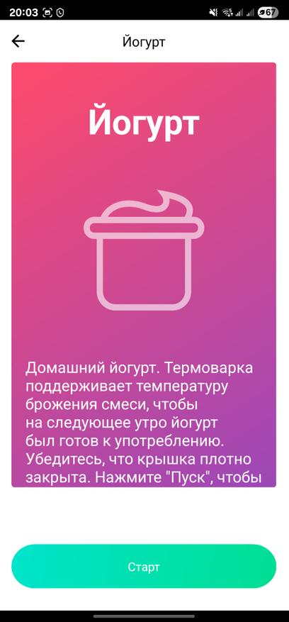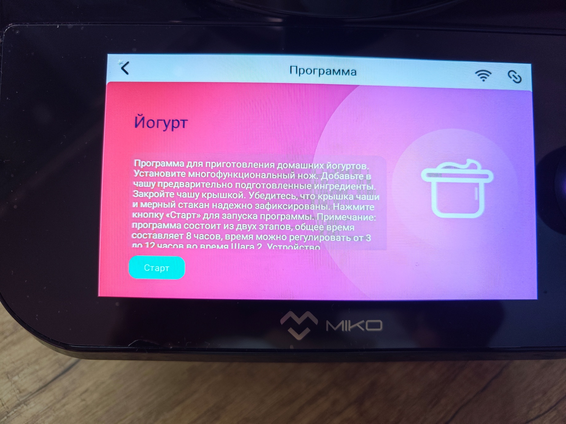 Еще одна из самых простых программ — это приготовление йогурта. От пользователя практически ничего не требуется, только добавить молока, закваски (йогуртовую культуру) и запустить программу. Не забудьте закрыть крышечку, так как внутри будет поддерживаться определенная температура, требуемая для правильного протекания процесса. В случае с йогуртом важно подобрать подходящее молоко: ультрапастеризованное не подходит, да и не любое пастеризованное (в коробках или бутылках) с прилавков подойдет для этих целей — не сбраживается до нужного состояния. Лучше всего взять фермерское молоко — результат будет лучше. Ну и не забывайте читать инструкцию к закваске.
