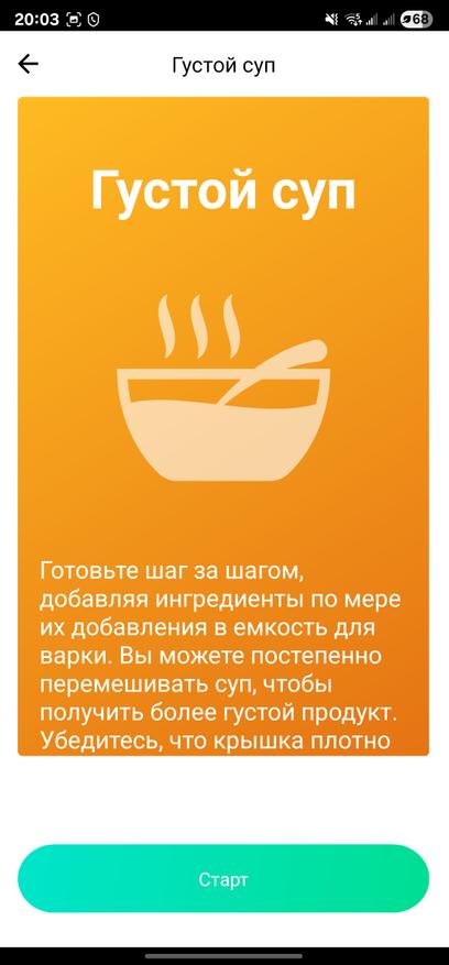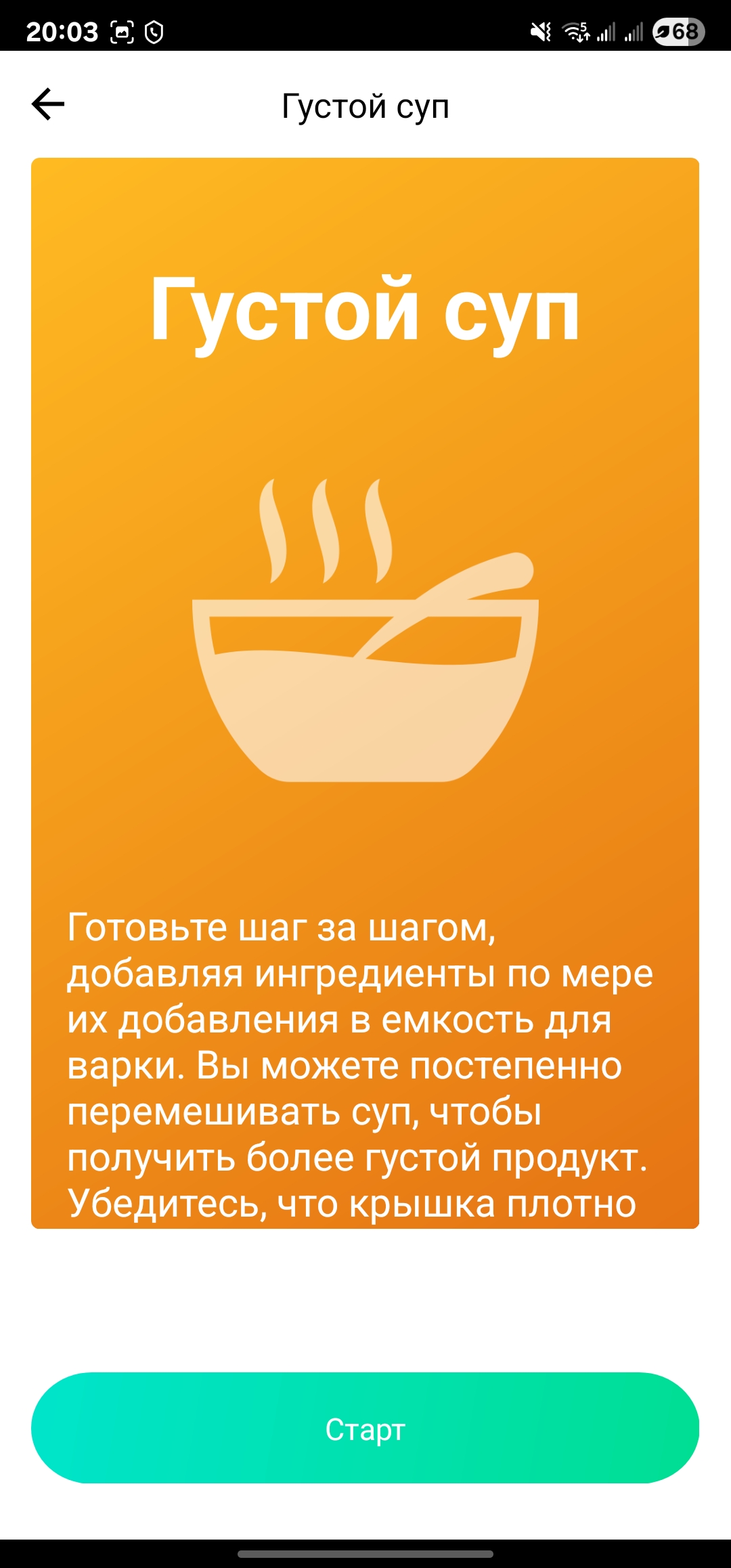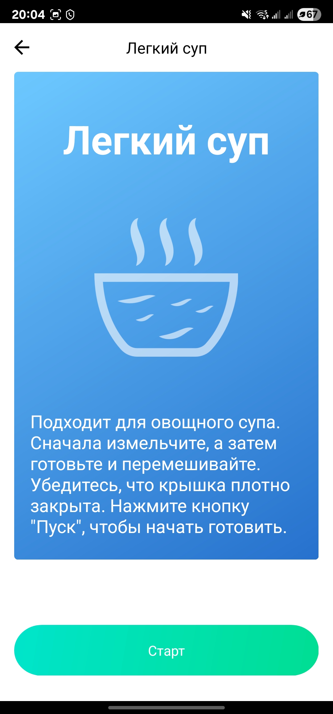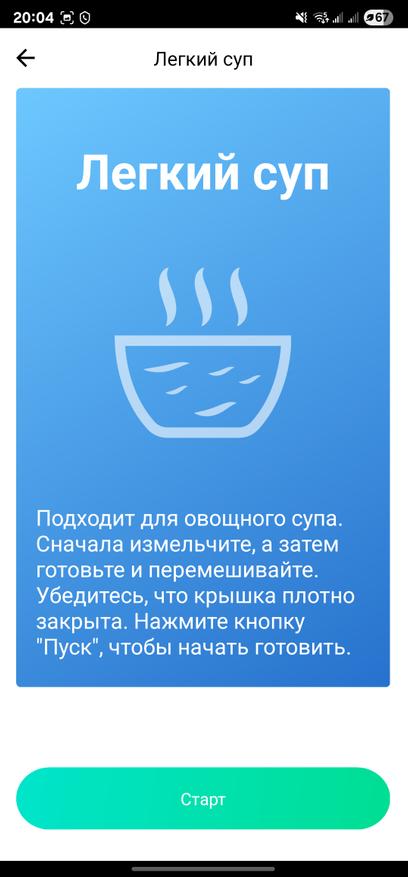 - программа для приготовления легкого супа и густого супа (отличаются режимами приготовления),