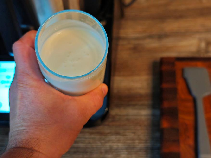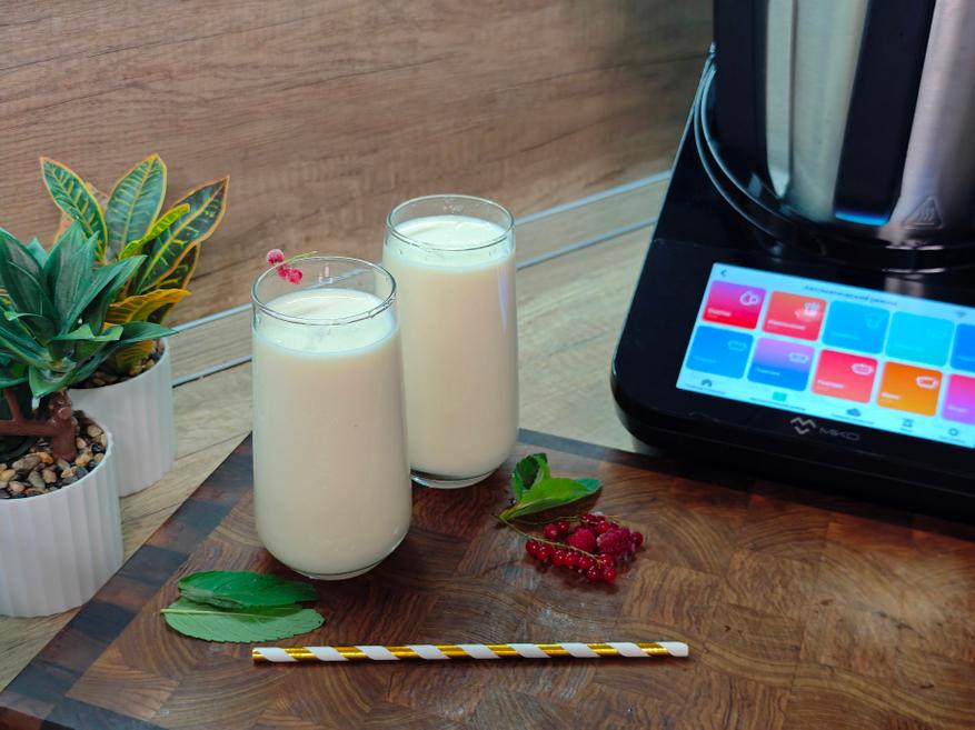 Начну с самого простого. Ребенок попросил молочный коктейль, что может быть проще. Да и отдельная программа у SMARTBOT C5 предусмотрена для подобных целей. Заливаю молоко, добавки/топпинги (обычно это мороженое и бананы/шоколад, а вот лёд для детей я не добавляю). Переключаю в меню на режим смешивание, запускаю программу. Нужно закрепить верхнюю крышку и установить колпачок, иначе будет брызгаться при интенсивном перемешивании. Буквально пять минут и коктейль готов.