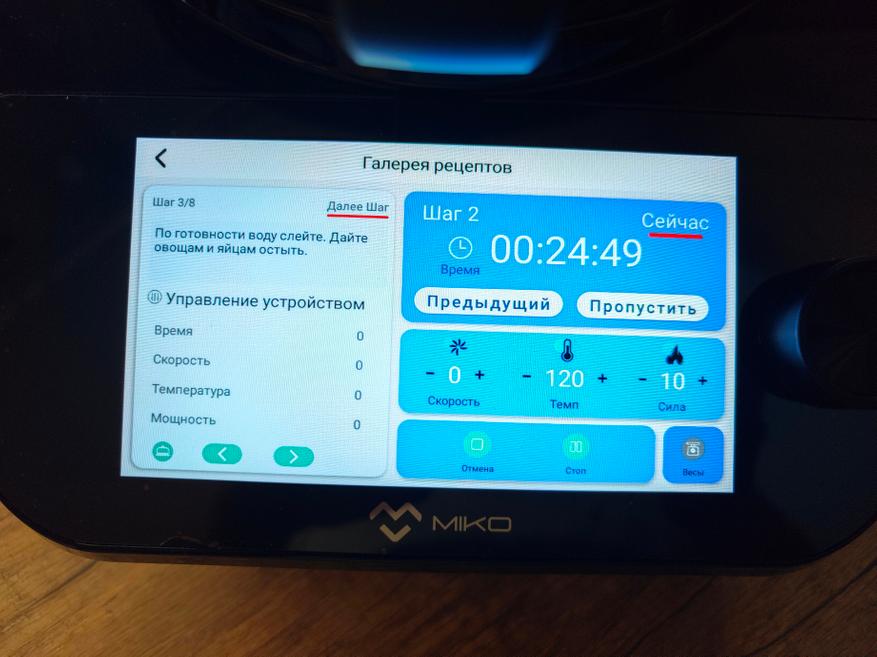 Если не смогли найти автоматическую программу для нужного вам способа приготовления, то можно воспользоваться ручным режимом. Помимо таймера можно выбрать одну из 10 скоростей для перемешивания/взбивания/измельчения, задать температуру и мощность разогрева.