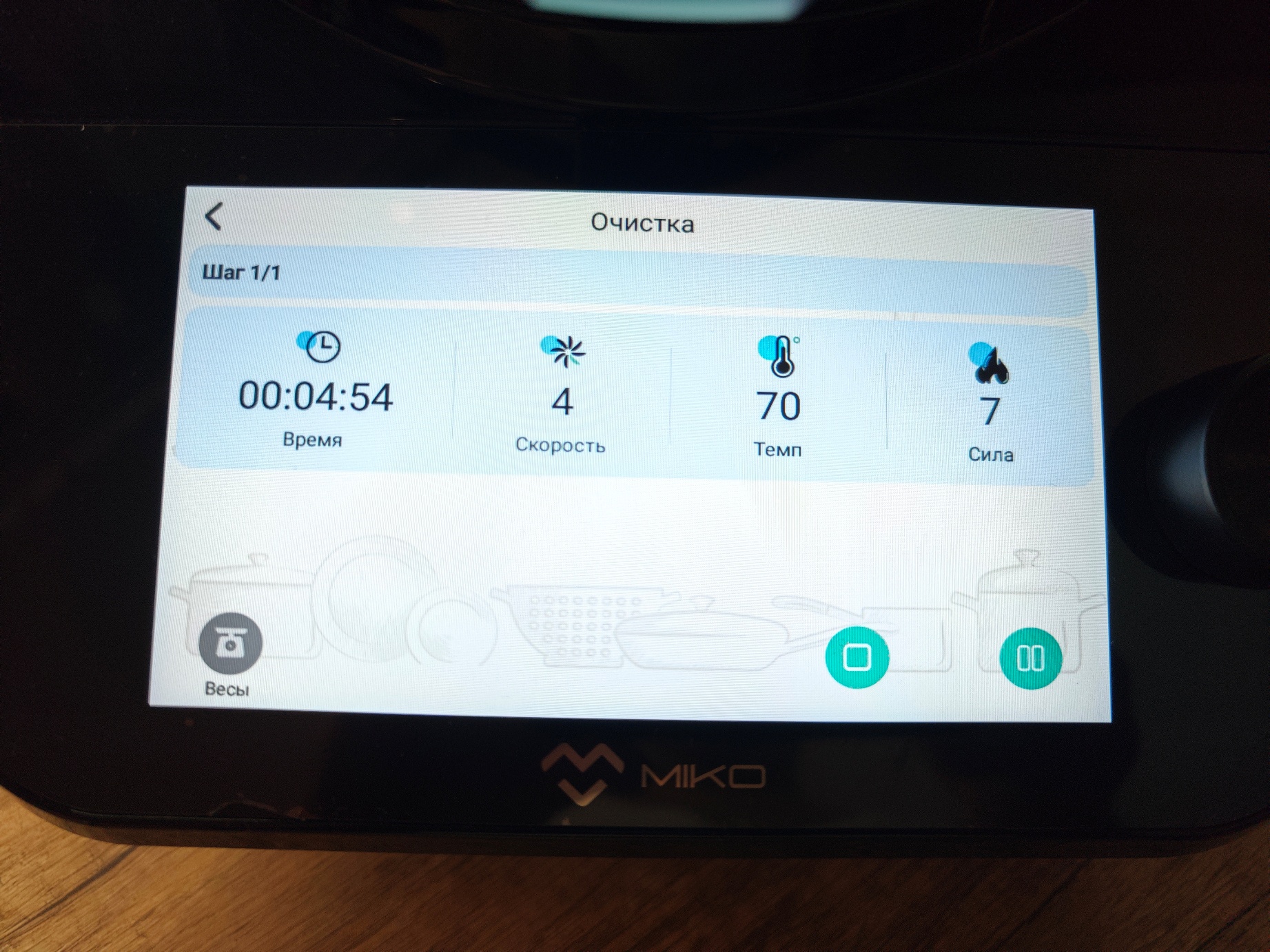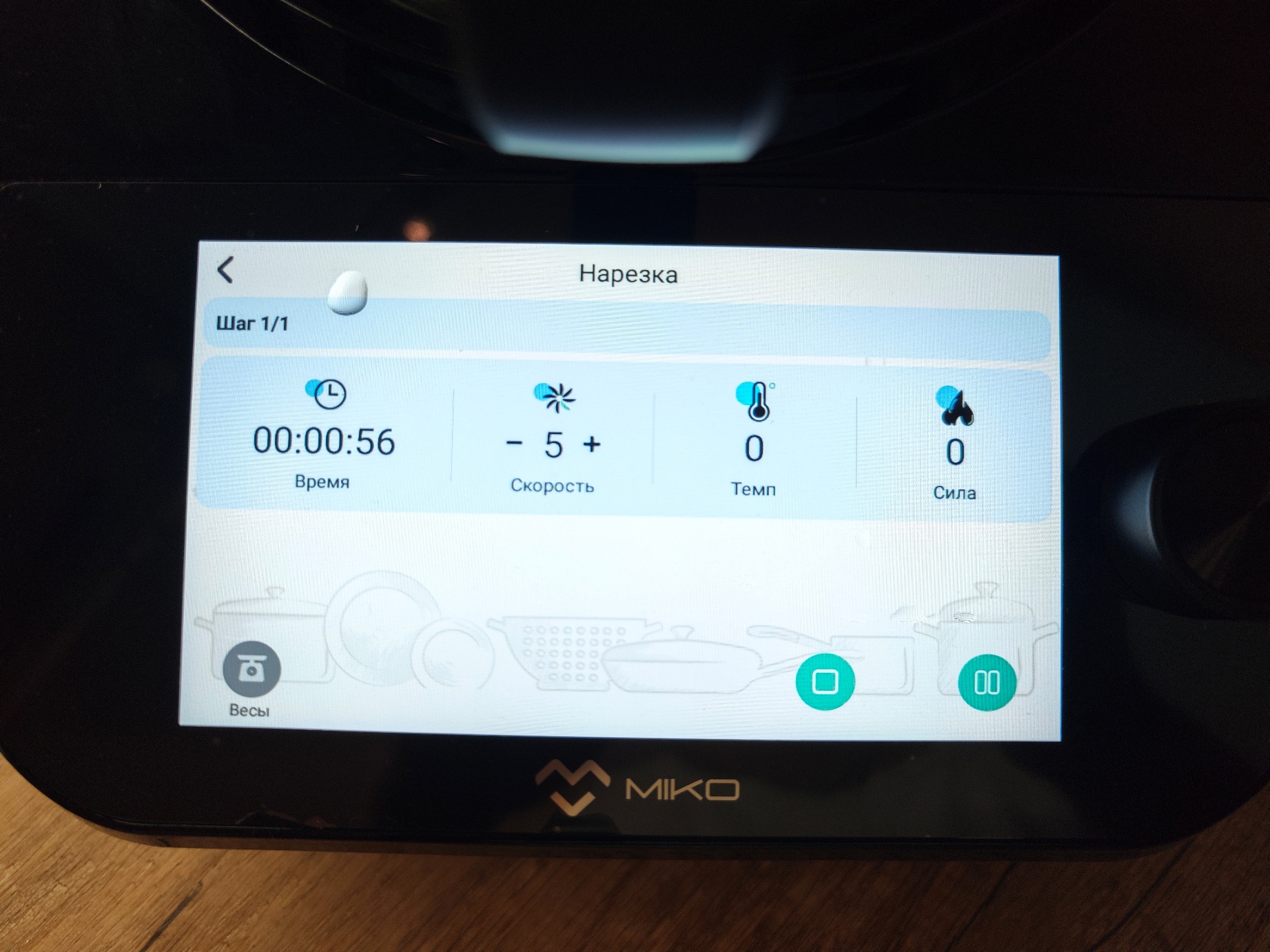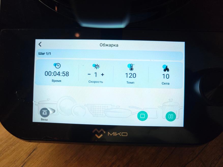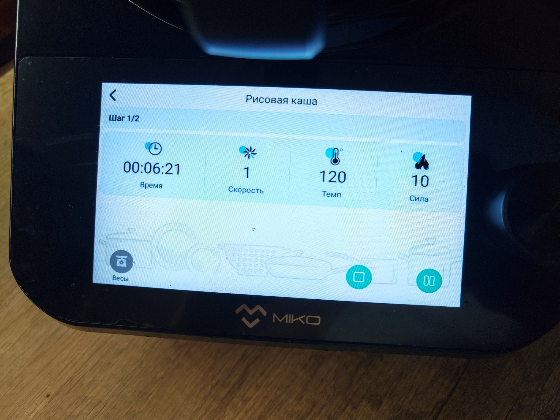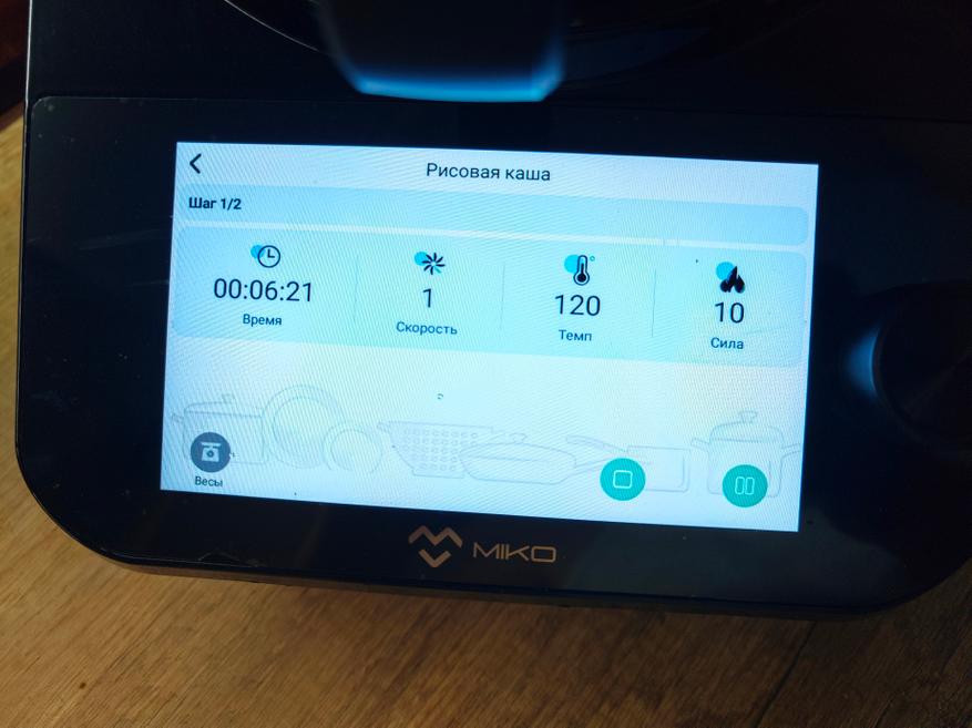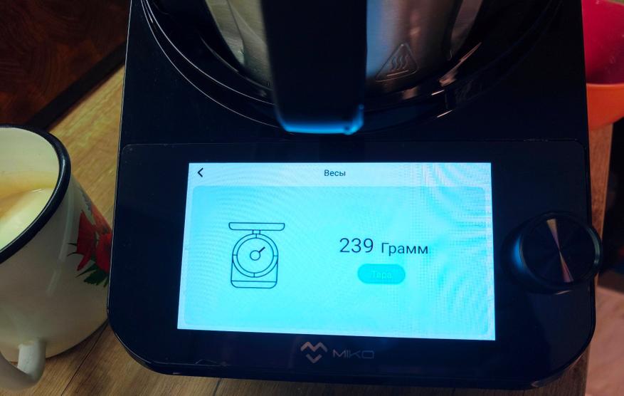 Встроенные весы в роботе — это весьма удобный момент, особенно выручает при работе с граммовками в рецептах. Часто пользуюсь, например, при приготовлении теста. Да и просто оценить количество ингредиентов можно. Вызов окна «Весы» есть практически из любой пошаговой программы приготовления. Есть функция обнуления («Тара»), позволяет продолжить счет для новых ингредиентов.