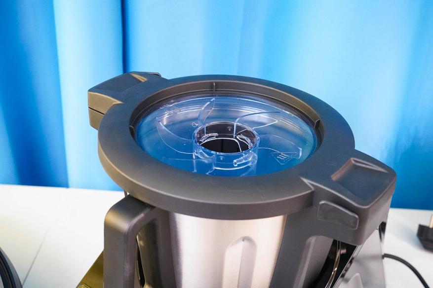 Сверху основной чаши устанавливается герметичная крышка с паровыпускным отверстием в центре. Крышка оснащается датчиками закрытия, то есть программа просто не запустится до тех пор, пока не установите крышку должным образом. Через отверстие выходит пар, что применяется при работе в режиме приготовления на пару — сверху устанавливаются дополнительные модули в виде трехуровневой пароварки.