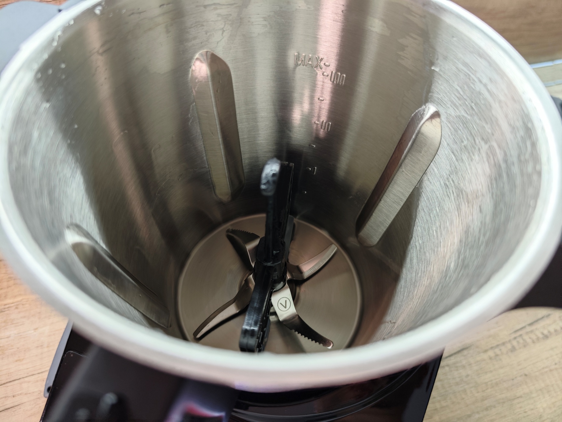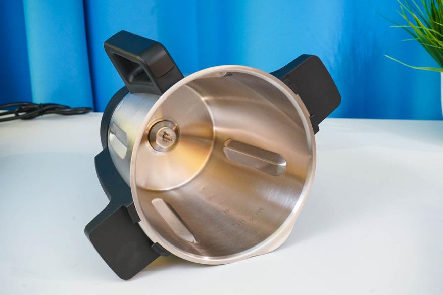 Главная часть робота, которая непосредственно используется для приготовления продуктов — это основная чаша в виде ёмкости из нержавеющей стали, с термостойкими ручками. Снизу ёмкости предусмотрена есть группа электрических контактов, обеспечивающих работу датчиков и нагревательного диска, а также металлический привод (шестерня) для вращения лопаток. В самом корпусе предусмотрены ответные контакты, защищенные от протечек, а также датчики встроенных весов.