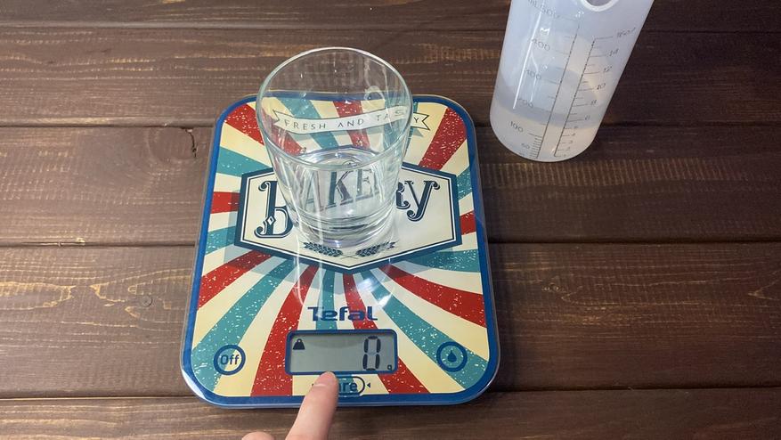 Функция «Тара» применяется очень просто, взяли и расположили любую ёмкость, например стакан и нажали на кнопку посередине «Tare» для обнуления счёта. Устройство буквально за 1 секунды обнуляет счётчик и теперь же можно налить, например обычную воду.