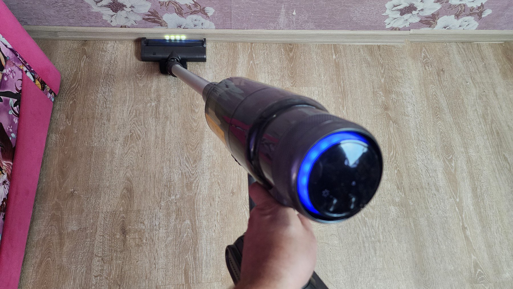 Пылесос лёгкий, достаточно просто наклоняется в стороны и позволяет вращать основанием роликовой щетки, выбирая направление для перемещения. Уборка качественная — вытягивает пыль/мелкий мусор из щелей, собирает вплотную к мебели и плинтусу, хорошо собирает шерсть от кота с ковриков. В плане управления также все удобно — выбрал режим и пробежался по всей квартире.
