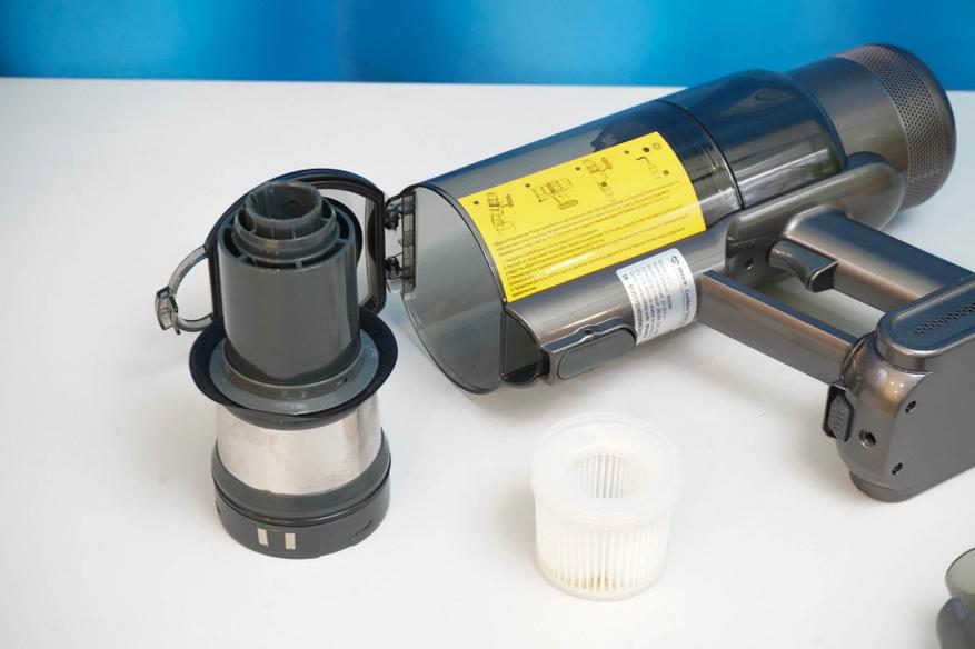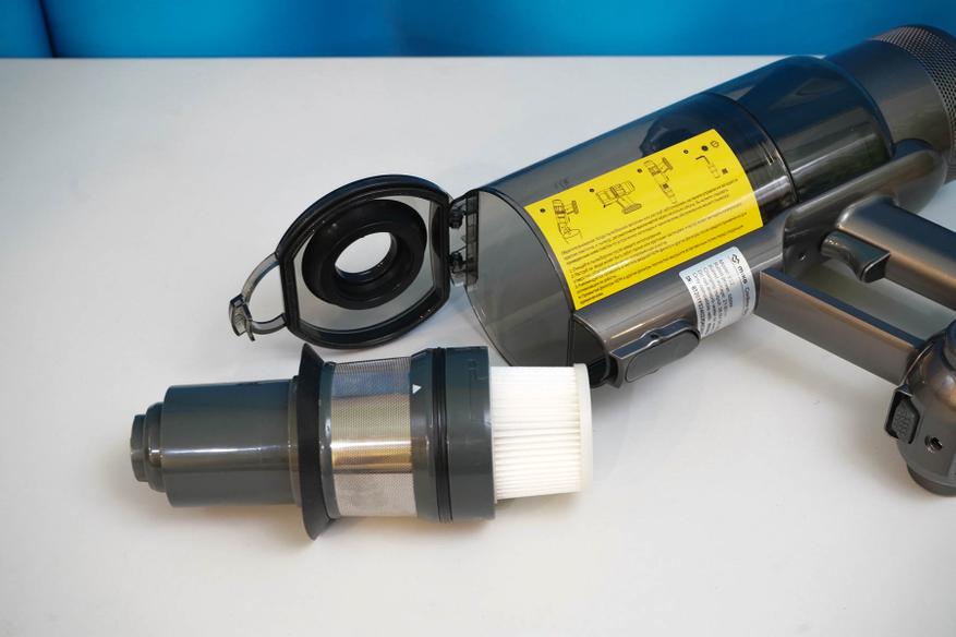 Формфактор основного (моторного) модуля классический — это продольно расположенная колба-пылесборник, с многоступенчатой системой фильтрации. Внутри мультициклон, стальная сеточка (грубая очистка), HEPA фильтр 13 поколения. Все разбирается. Фильтры допускают промывку проточной водой (с последующей 24-часовой просушкой), а колбу можно протирать внутри влажной салфеткой или ветошью.