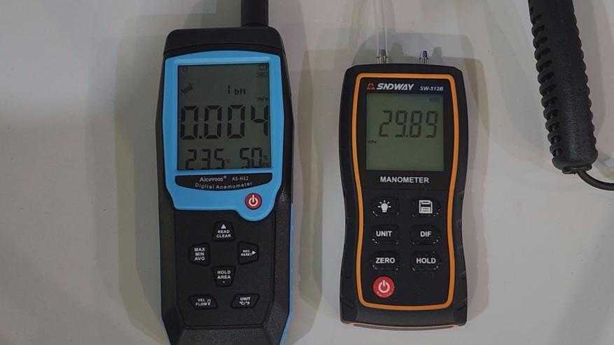 Пылесос внешне интересный. Но так ли он хорош на практике? Проведу проверку в деле: измерю реальную силу всасывания. Замер всасывания на стенде с анемометром и дифференциальным манометром (вакуумметром) показал следующие значения разрежения:
