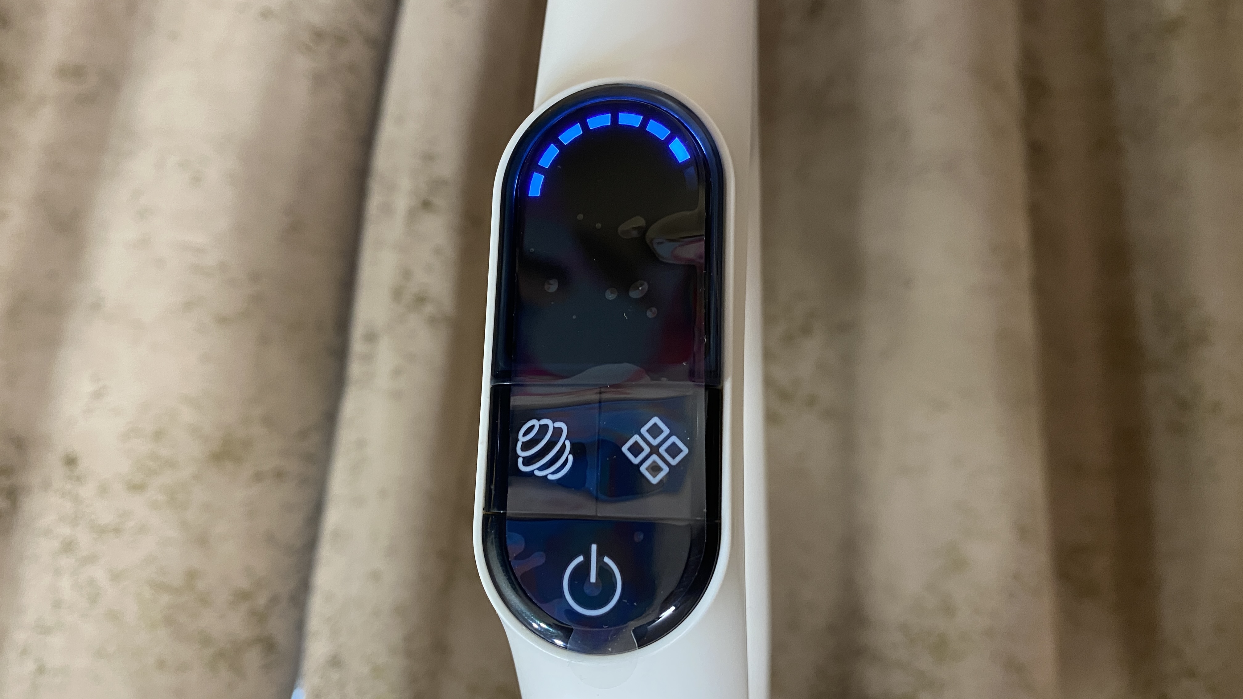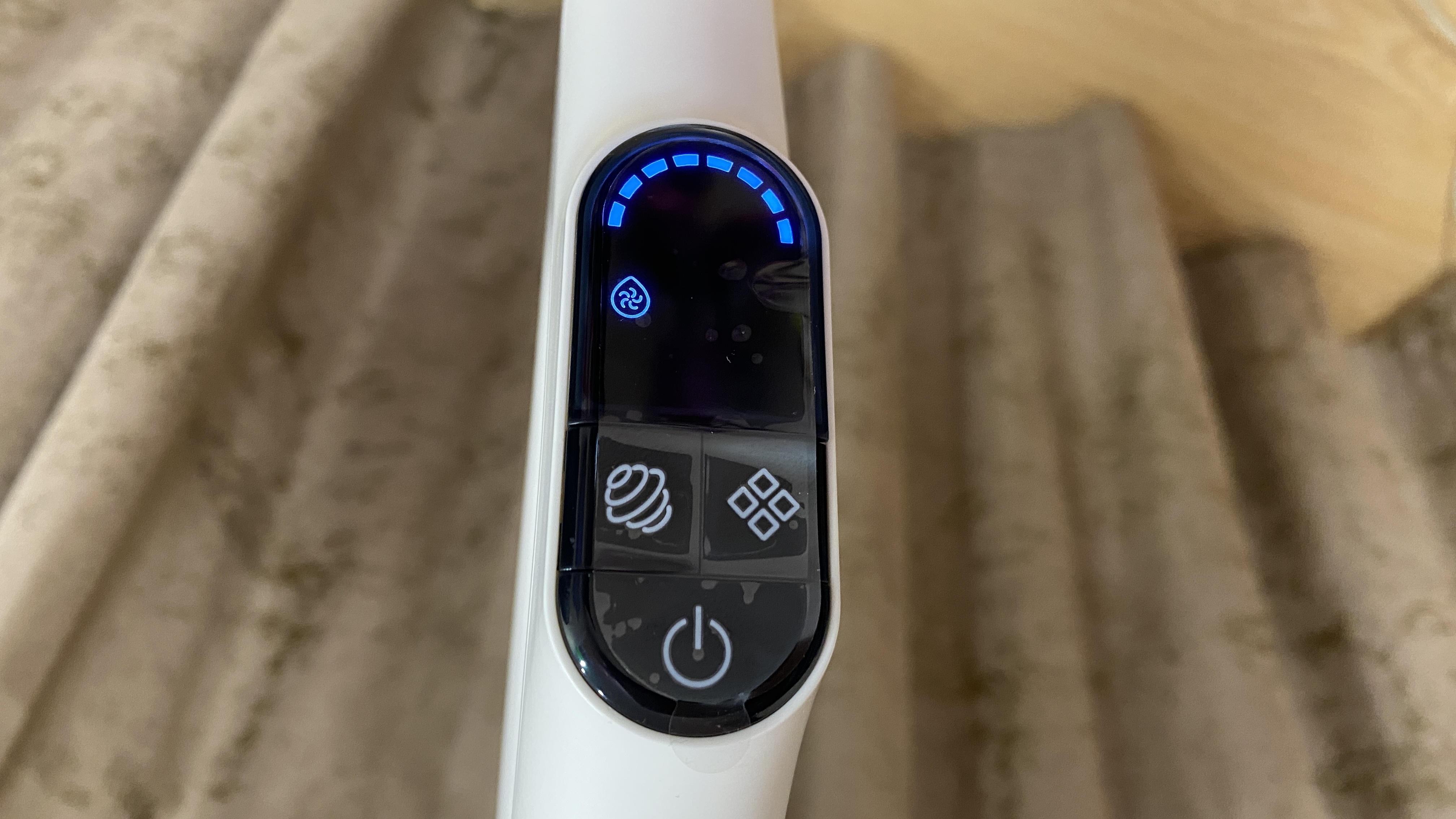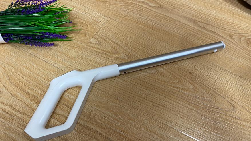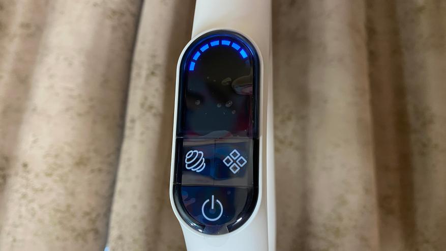 Всё управление выведено на удлинительную ручку. На задней части имеется механическая кнопка для включения режима самоочистки (включается только после установки пылесоса на станцию). На лицевой части расположен дисплей, на котором отображается процесс уборки и выбранный режим. Под дисплеем находятся три кнопки: кнопка отключения/включения, кнопка для включения и отключения голосового уведомления — она же используется для выбора режима, кнопка для изменения силы всасывания. На дисплее отображаются: индикатор режима «турбо», индикатор влажной уборки, индикатор режима сухой уборки, индикатор отсутствия воды, индикатор включения самоочистки, индикатор заполненного бага для грязной воды и мусора. Все индикаторы имеют синею подсветку, которую отлично видно как ночью, так и днем, даже при прямом солнечной свете.