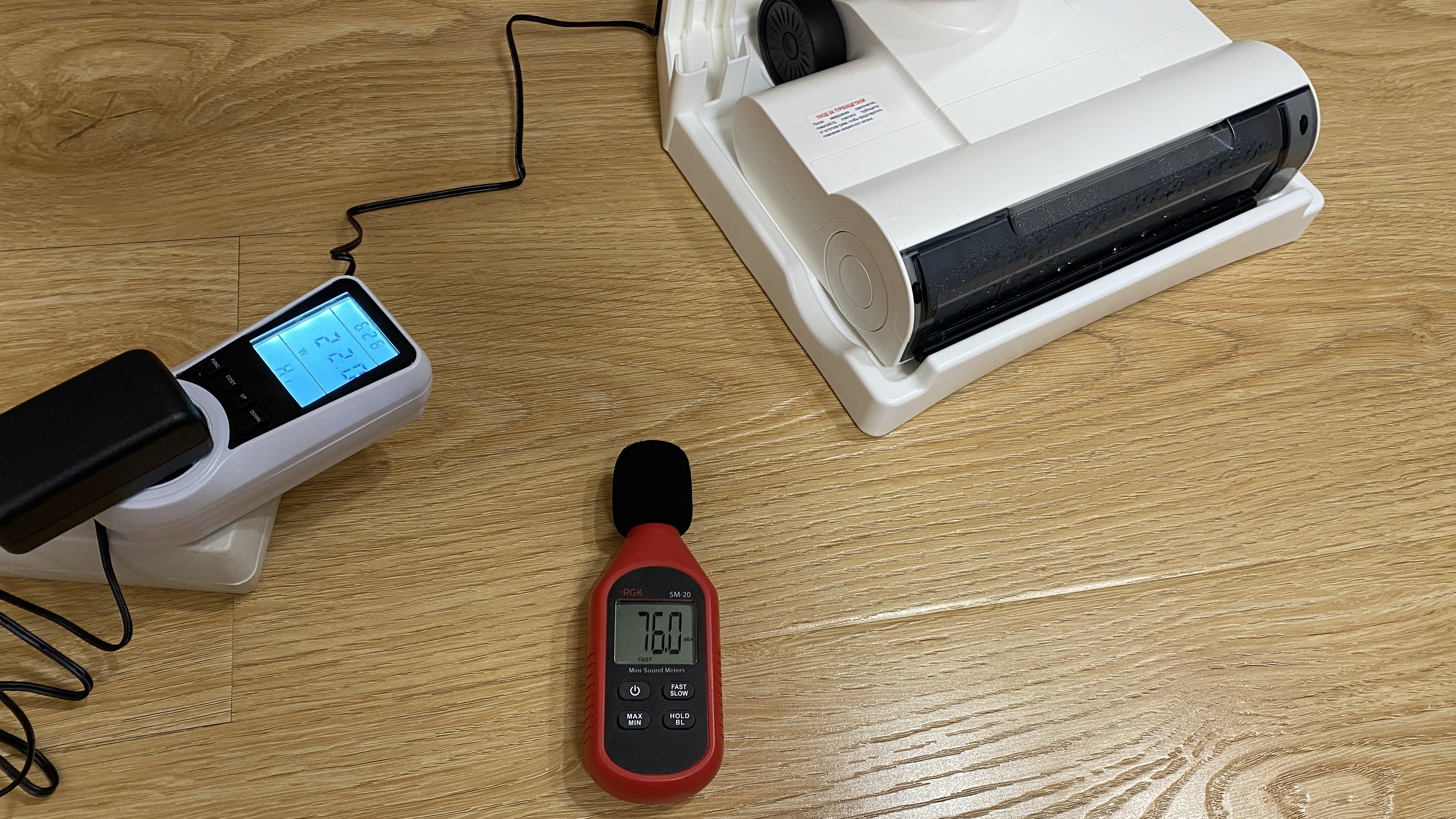 Во время зарядки пылесос потребляет 21 Вт. Во время самоочистки уровень шума составляет 76 dB, а во время обычного использования с включенным режимом для сухой уборки уровень шума составил 70 dB.