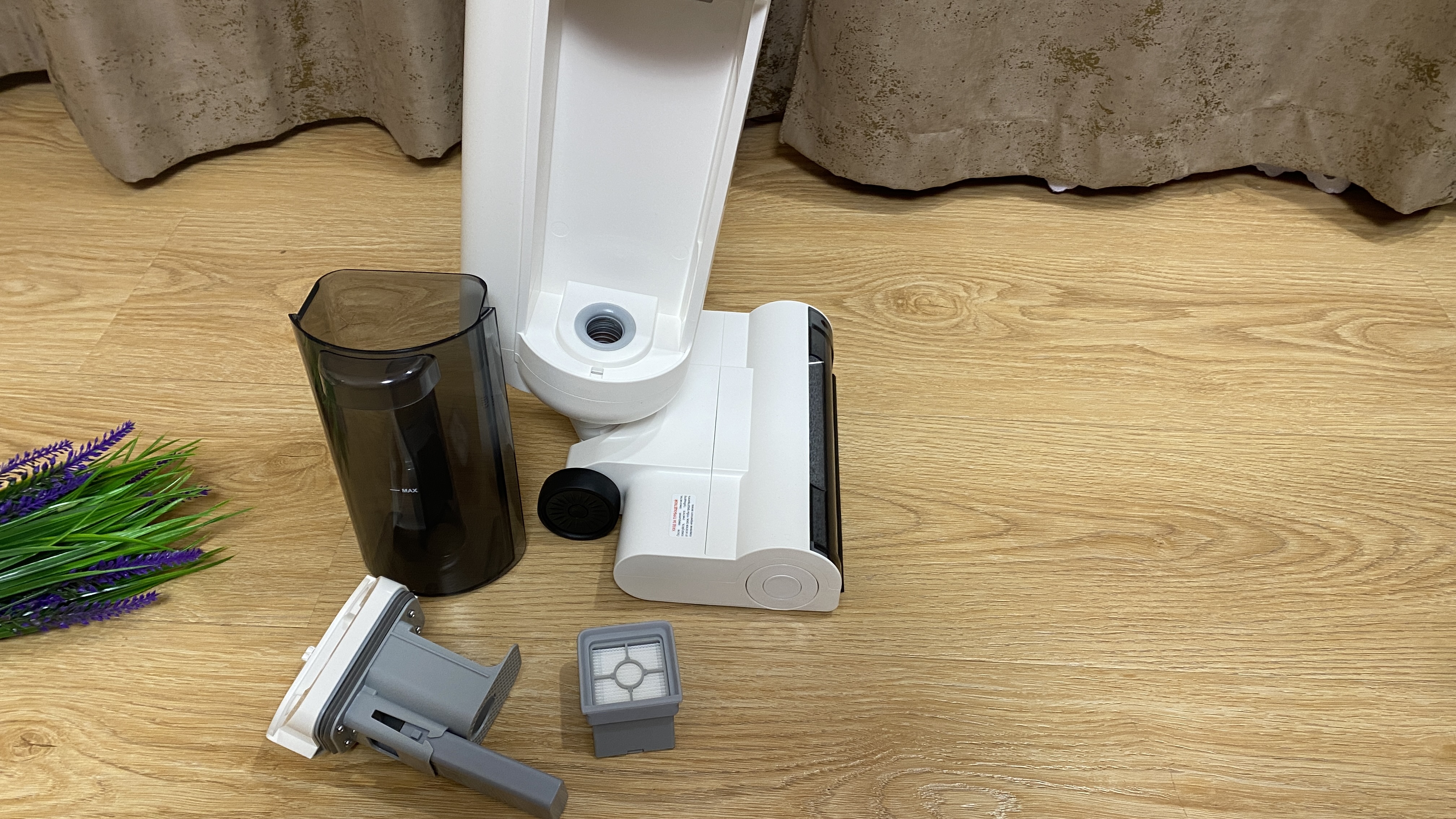 В заключении могу сказать, что моющий аккумуляторный пылесос РЕДМОНД MultiClean VH1334 выполнен весьма качественно и может быть рассмотрен как универсальный прибор не только для сухой уборки, но и для влажной. Благодаря наличию турбощетки и дополнительный колесикам, пылесос беспроблемно перемещается по любому напольному покрытию. Пылесос с силой всасывания до 12 кПа прекрасно убирает крупный мусор в виде крупы, разлитый кефир, разбитое яйцо и кетчуп. После такой уборки нет необходимости разбирать пылесос для осуществления очистки, а просто необходимо установить пылесос на станцию зарядки/самоочистки и включить режим очистки. Моющий пылесос работает от аккумулятора с ёмкостью 4000 mAh, которого хватает на полноценную уборку квартиры или небольшого дома. Комплектация хоть не самая богатая, но для сухой и влажной уборке этого будет достаточно. Определенно порадовал белый цвет корпуса, который не собирает отпечатки пальцев и другого загрязнения, а также белый цвет прекрасно впишется в любой интерьер комнаты.