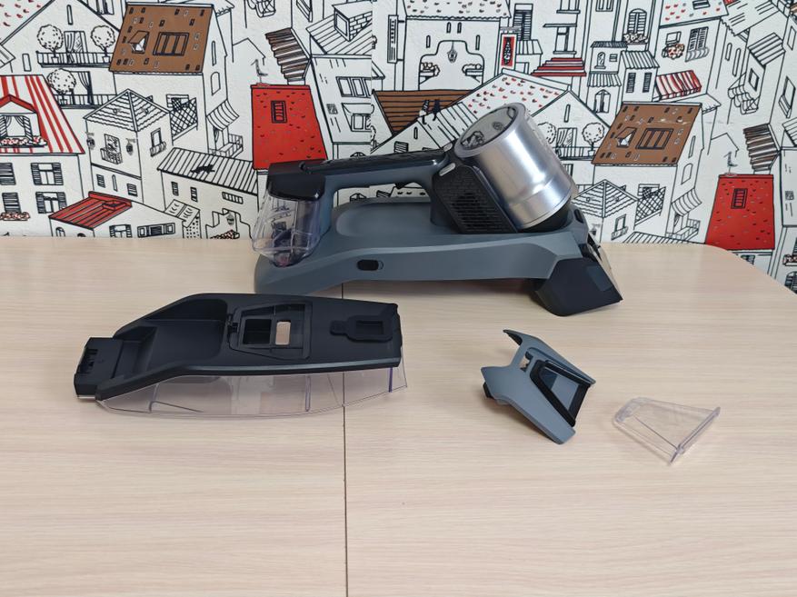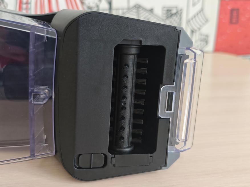 Поговорим про отсеки для воды. В отсек для чистой воды можно добавить моющее средство для более качественного удаления пятен с мебели или ковров, особенно если загрязнения сильные. Объём этого резервуара 300мл. Далее переходим к резервуару для грязной воды. Он побольше и его объем составляет 500мл. Лично я на одном заряде аккумулятора так и не смог его заполнить. Для очистки он легко снимается и промывается. Мне понравилось, что оба резервуара съемные, после окончания процесса уборки вы сможете легко их промыть и оставить сушиться.