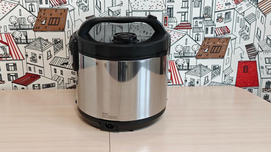 Прибор имеет классический дизайн, выполнен в чёрном цвете. Корпус изготовлен из пластика, устойчивого к высоким температурам. Прибор выглядит стильно, легко впишется в любой кухонный интерьер. Прибор оснащён сенсорным управлением. Компактные размеры делают мультиварку удобной для любого помещения.