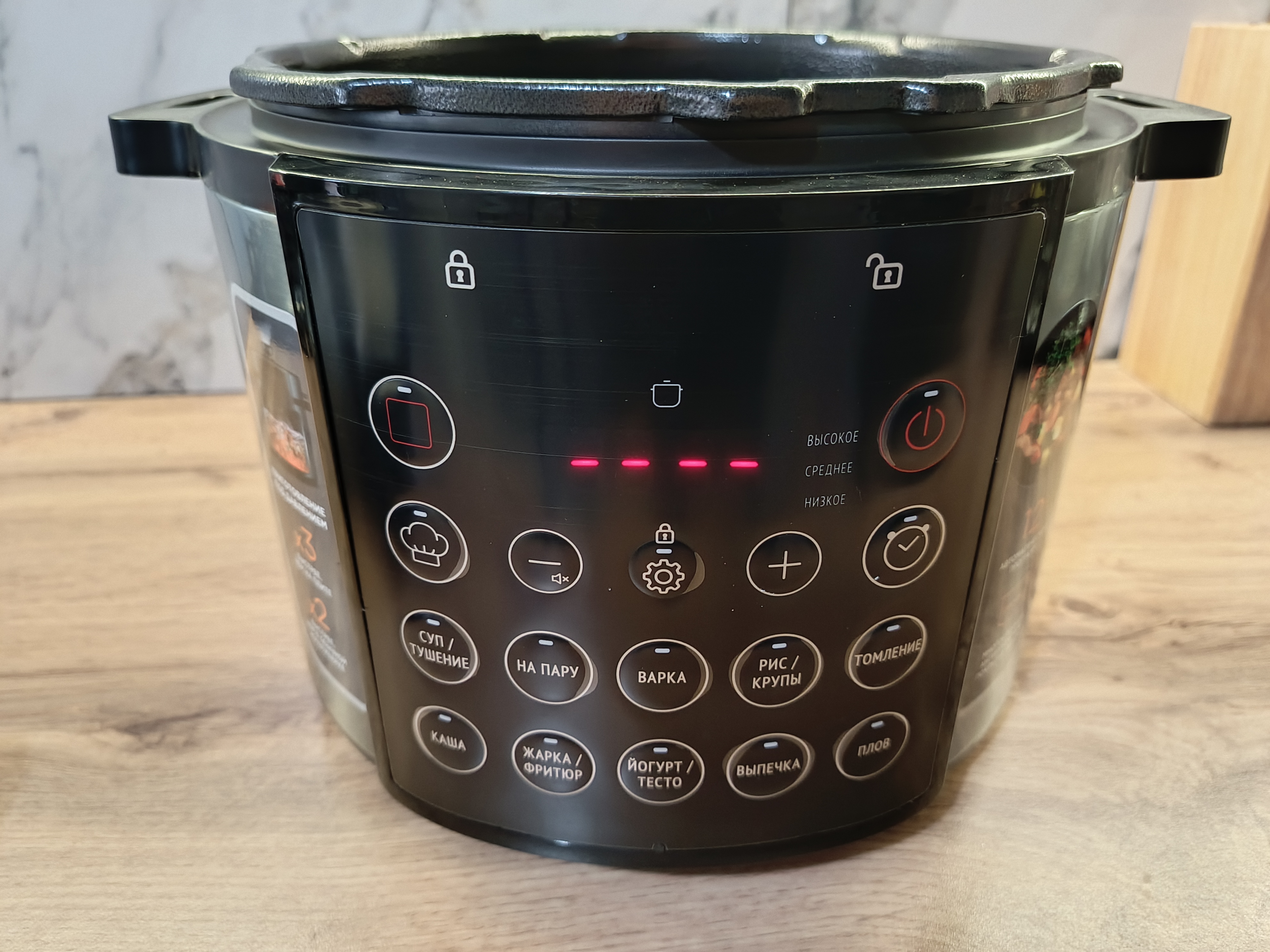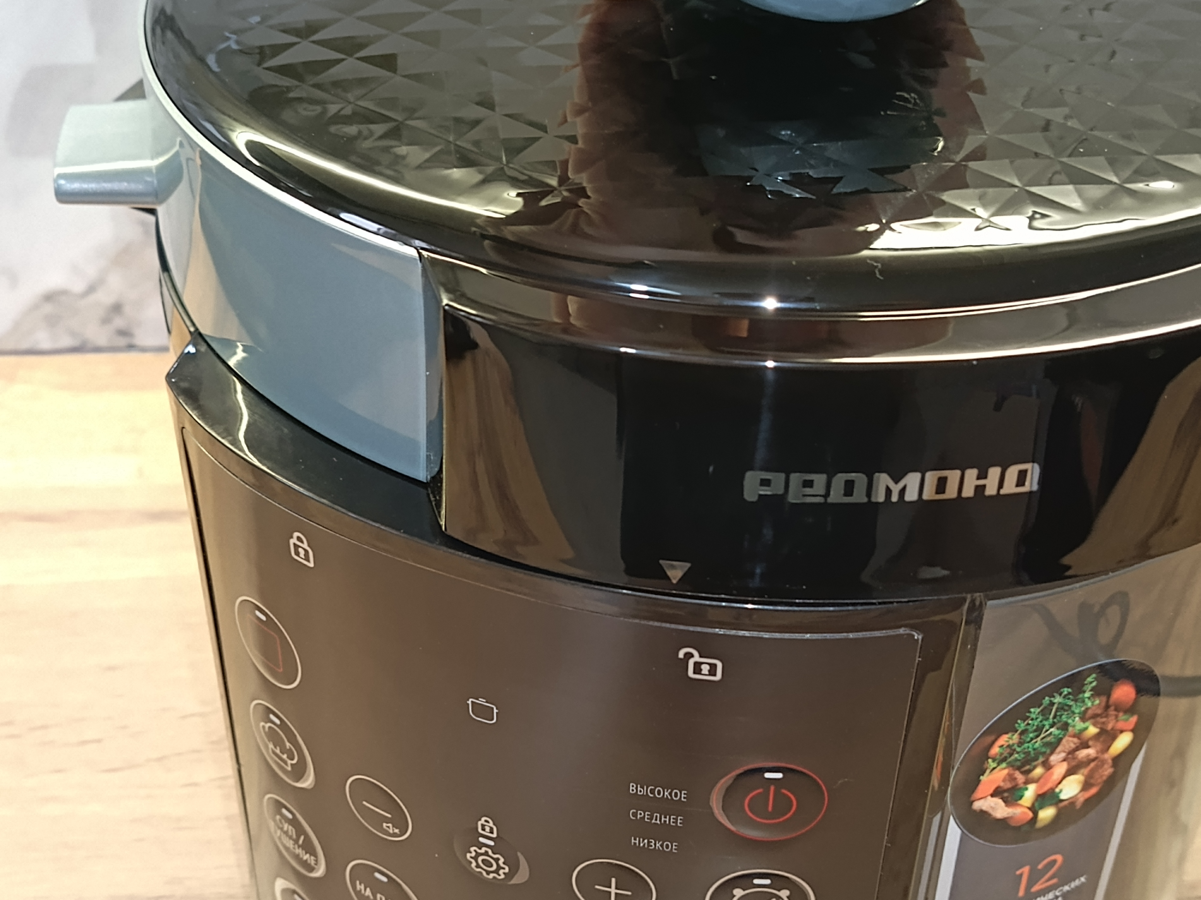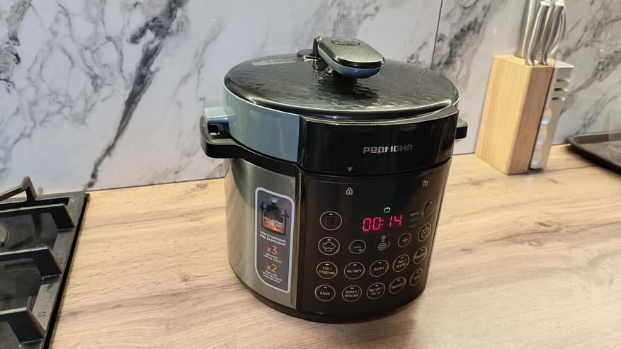Прибор оснащён различными системами защиты: блокировка кнопок, предохранение от избыточного давления и предотвращение случайного открытия крышки под давлением. И, конечно, один из главных плюсов этой модели — её доступная цена при таком наборе функций.