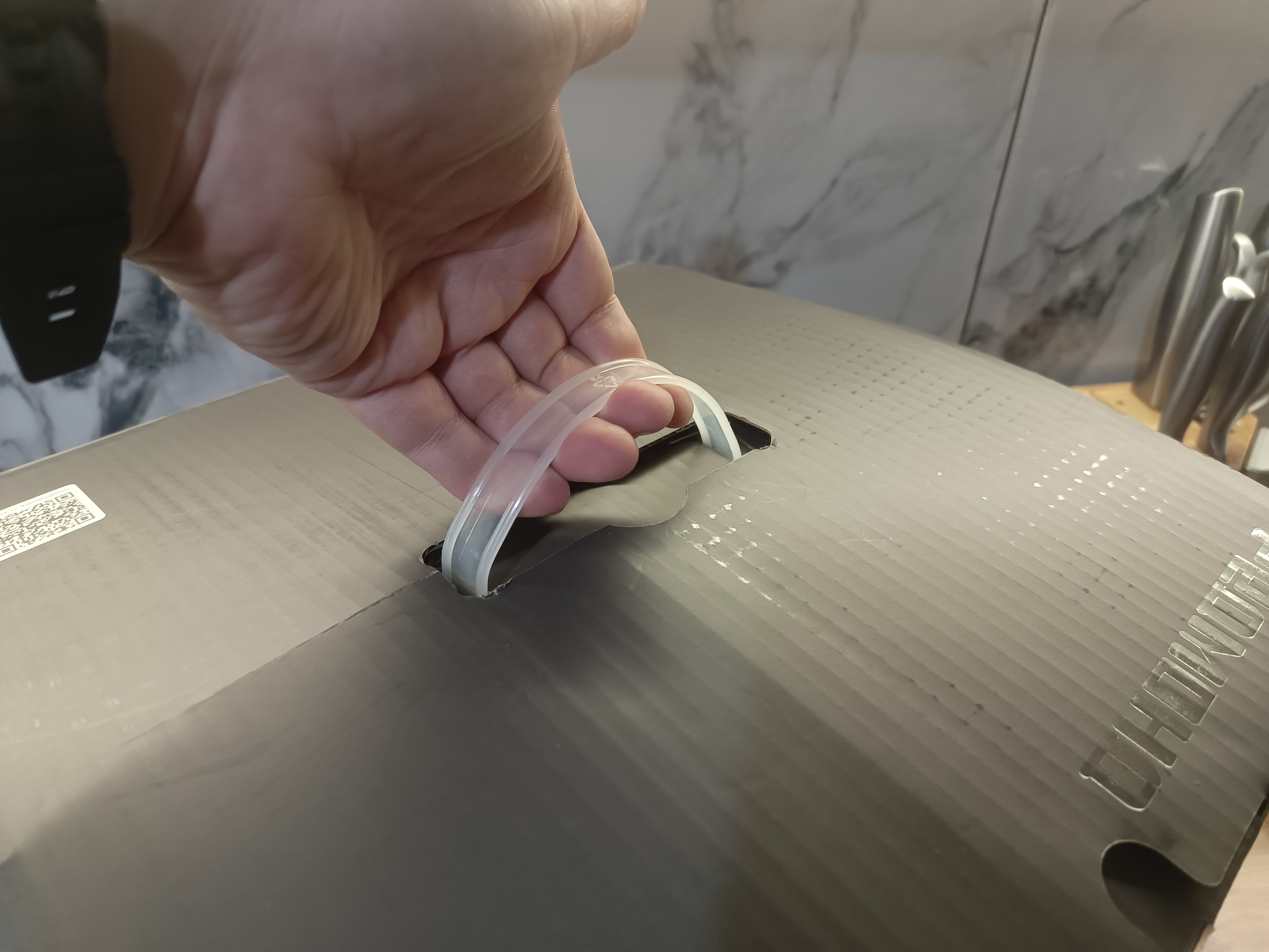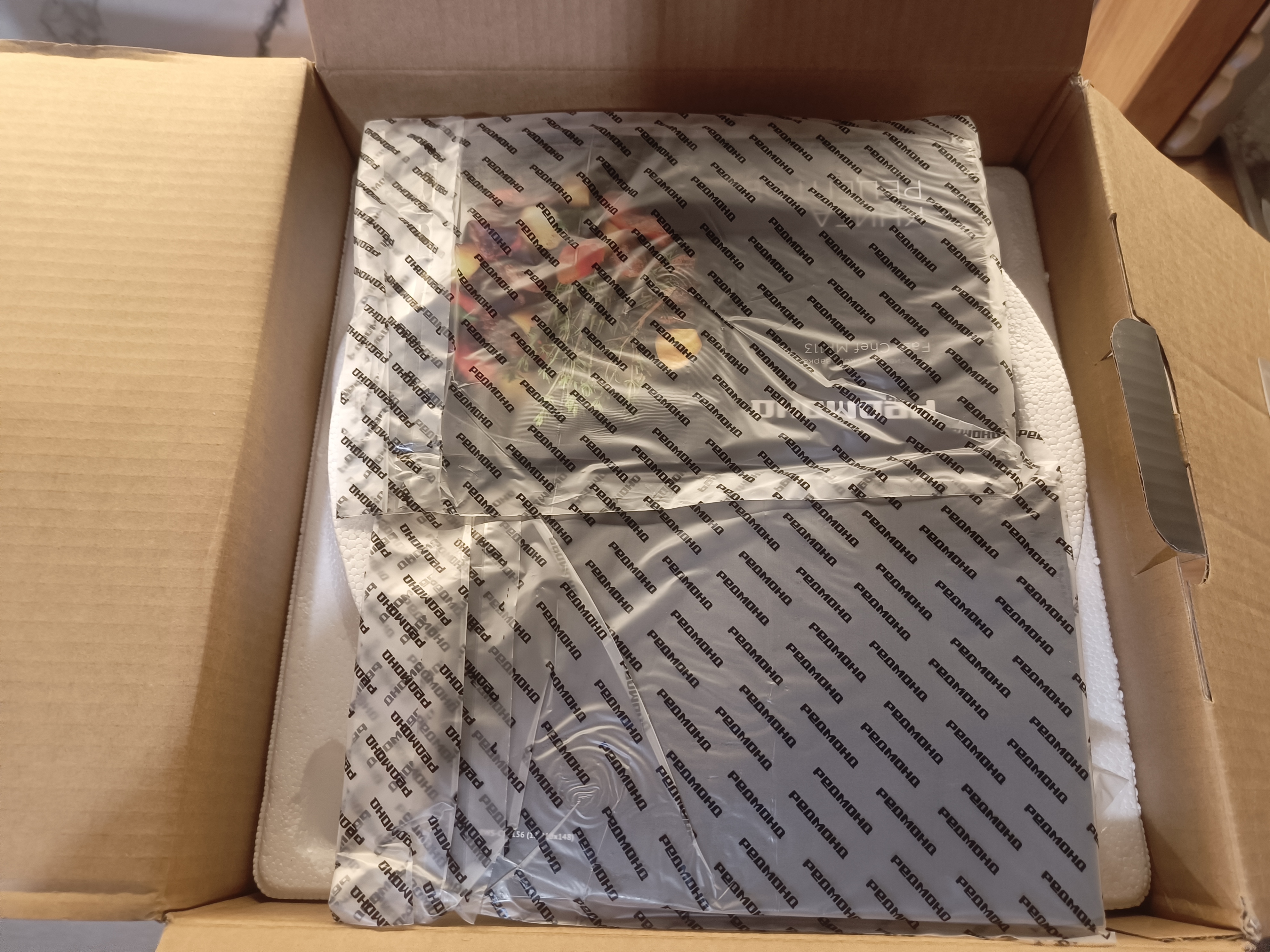 Мультиварка-скороварка поставляется в фирменной картонной коробке, выполненной в узнаваемом стиле бренда и оснащённой удобной прочной ручкой для комфортной транспортировки. Такая упаковка облегчает переноску устройства и обеспечивает дополнительное удобство при покупке. Внутри все элементы размещены аккуратно и продуманно: комплектующие надёжно зафиксированы и защищены пенопластовыми вставками, что минимизирует риск повреждений при перевозке и хранении.