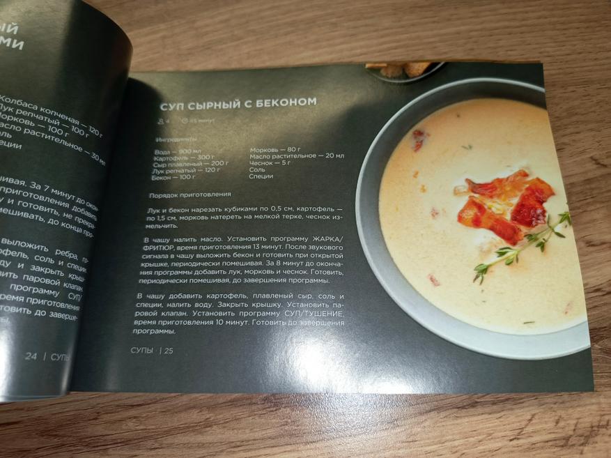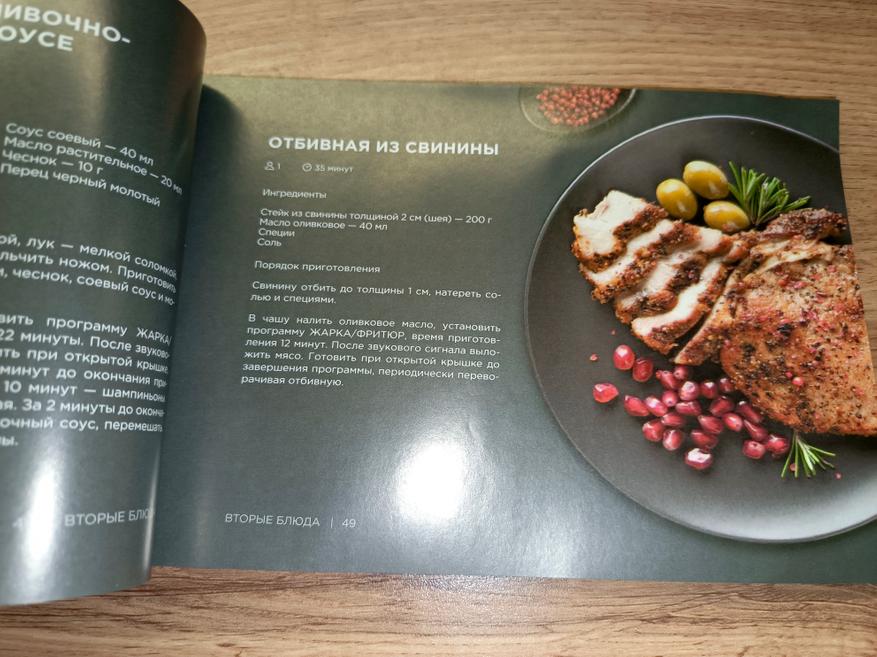 В книге рецептов представлено более 100 разнообразных блюд — от повседневных до более изысканных вариантов. Все рецепты сопровождаются красочными иллюстрациями и подробным описанием последовательности действий, что значительно упрощает процесс приготовления даже для начинающих пользователей. Каждый этап расписан понятно и доступно, поэтому разобраться будет несложно. Уверен, что каждый сможет найти в этой книге что-то по своему вкусу и открыть для себя новые интересные блюда.