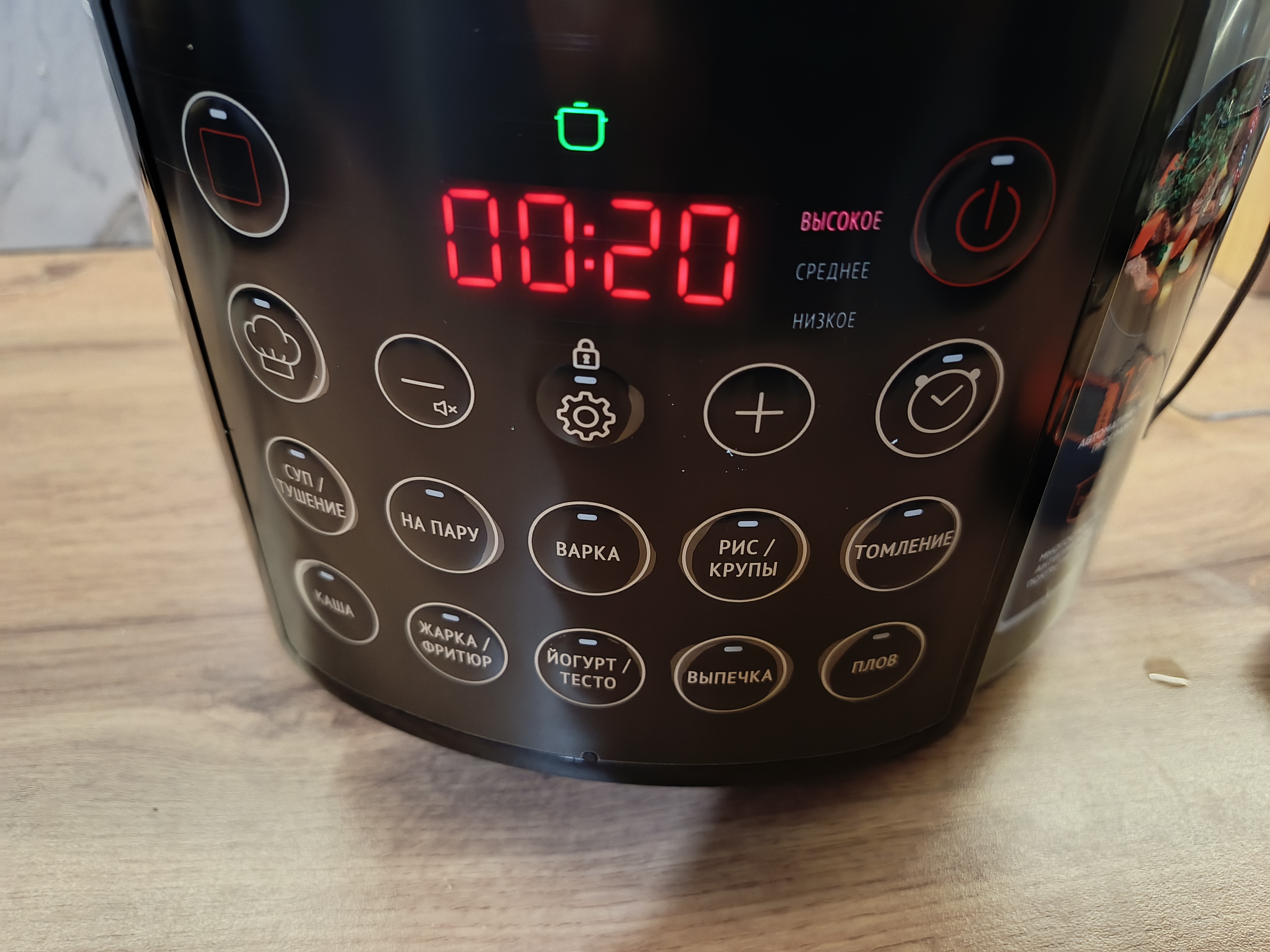 Дисплей крупный и яркий, информация на нём хорошо читается даже при ярком освещении кухни. По завершении выбранной программы прибор подаёт характерный звуковой сигнал, уведомляя о готовности блюда.