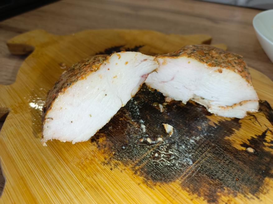 Для контроля температуры я использовал беспроводной термометр, который помещается вместе с продуктом в вакуумный пакет. Существуют различные формулы для расчёта времени по диаметру куска, но в целом принцип остаётся простым: это су-вид, и переготовить мясо невозможно, так как оно не нагреется выше установленной температуры. В среднем у меня ушло около 3,5 часов на куриную грудку и 4,5 часов на свиной карбонат, и результат оказался равномерно приготовленным, сочным и ароматным.