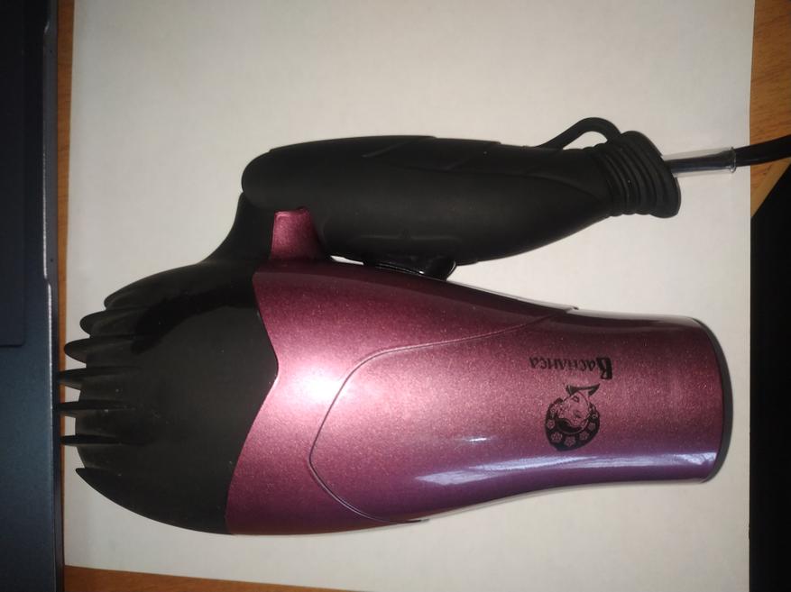 Фен был куплен в одном из сети дисконтеров «Светофор» за 400 рублей, приобрели как дополнительный, но впоследствии перекочевал в категорию «основных» по причине поломки предыдущего. Большую роль в выборе сыграл небольшой размер, а так же цена, сравнимая со стоимостью килограмма хороших конфет. Произведен в России. Ценовой диапазон в интернете от 450 до 800 рублей, ссылку не оставлю, легко найти по названию. Хорошо упакован в комплектации насадка-концентратор и руководство.