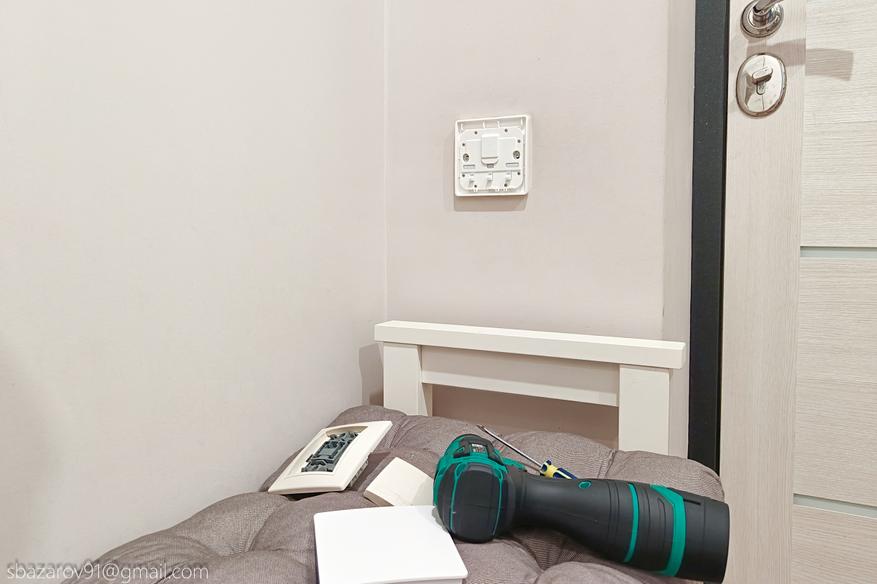Также можно использовать выключатели BOX вместе с обычным проводным выключателем, который будет выполнять роль мастер-выключателя. В моем случае это было бы лишним, так как я планировал реализовать схему с проходными выключателями в коридоре. Когда-то на этапе прокладки электрики я хотел установить второй выключатель на выходе из комнаты, что было бы очень удобно. Однако из-за лени я решил, что пройти 3 метра в темноте — не такая уж проблема, и отказался от этой идеи. Теперь, после установки проходных выключателей, я понимаю, что нужно было пересилить лень и все-таки сделать.