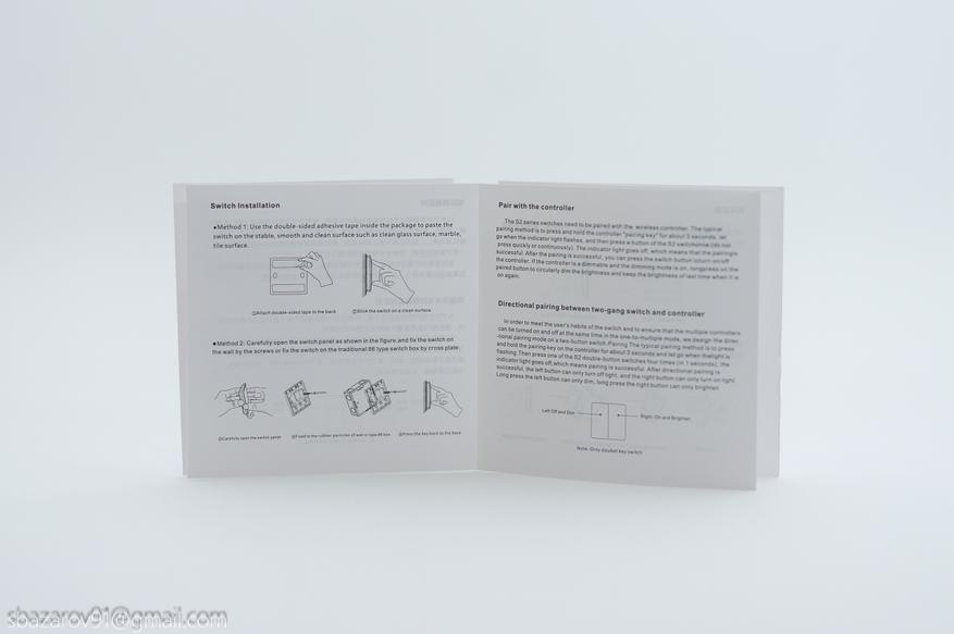 Инструкция на английском и китайском языках, там же схема подключения и описание привязки реле к выключателям.