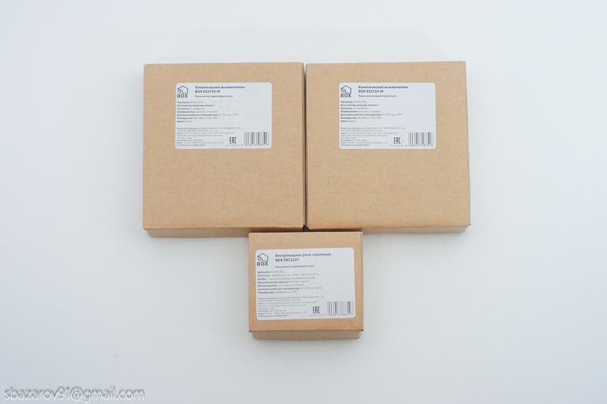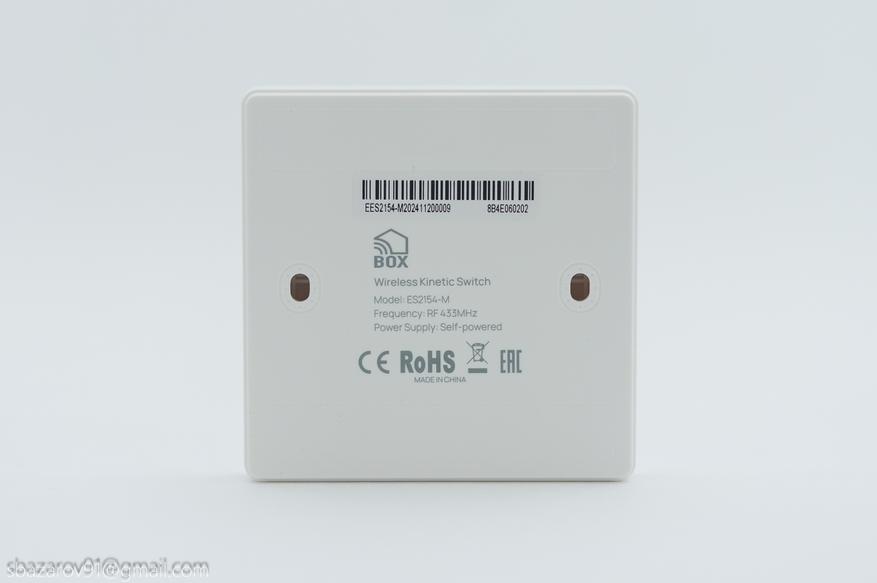 Переходим к выключателям. Выключатели серии BOX ES2154-М — кинетический выключатель, не требующий питания. Как и реле, выключатели работают на частоте 433,9 МГц.