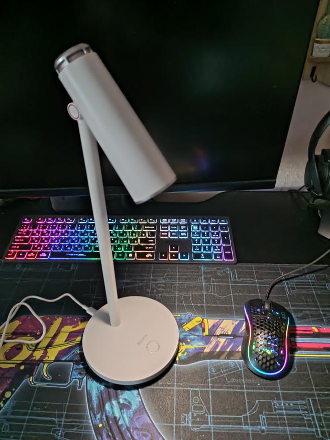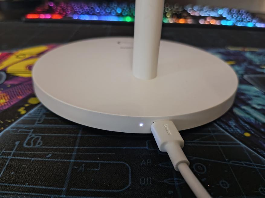 В комплекте нет блок питания, только кабель для зарядки. Так как светильник используется за компьютерным столом, лампу подключили в свободный USB порт компьютера.
